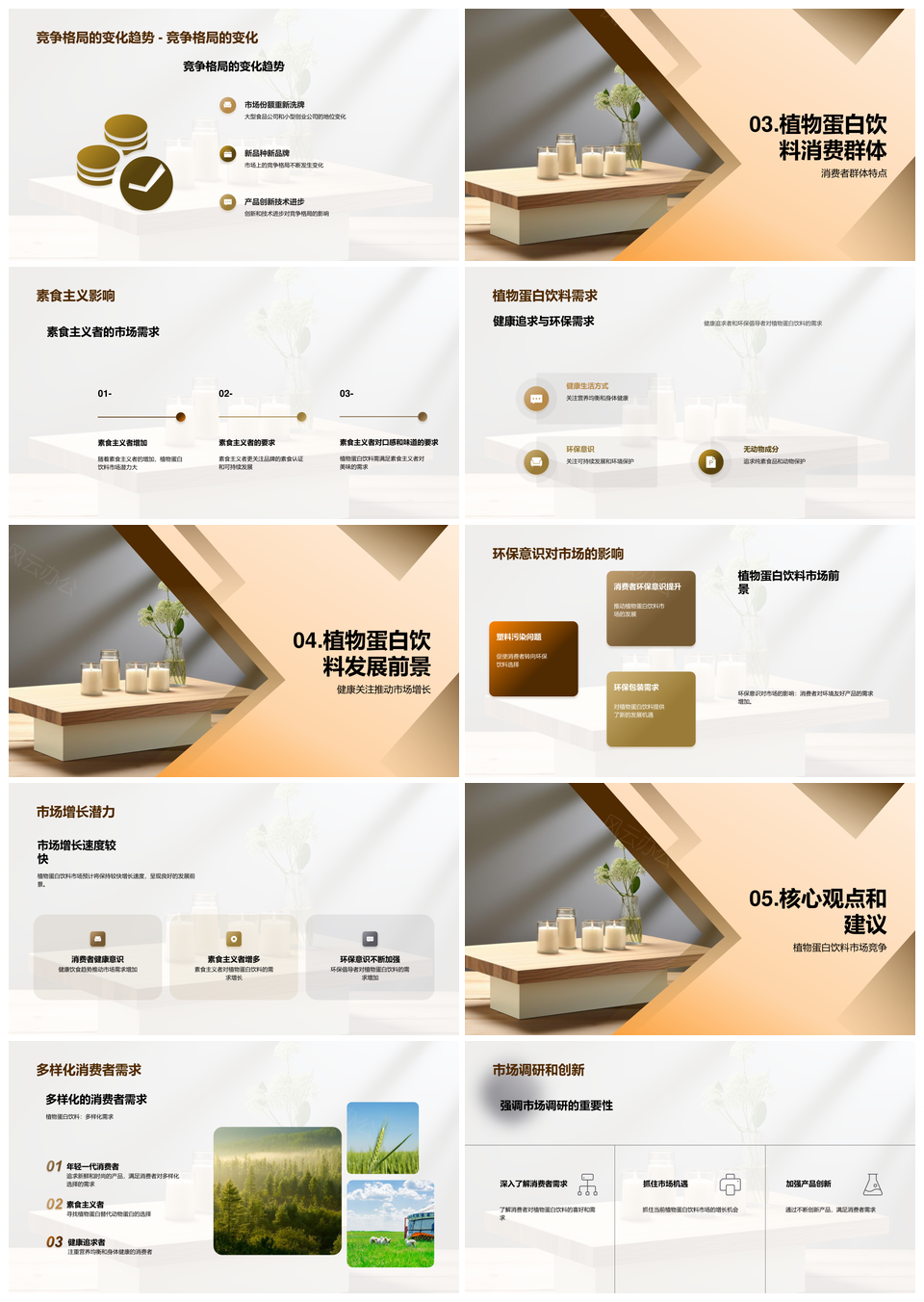 植物蛋白饮料市场竞争趋势与巨头发展分析PPT模板推荐