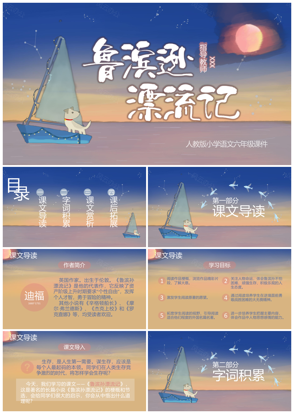 人教版小学语文六年级课件鲁滨孙漂流记PPT模板推荐