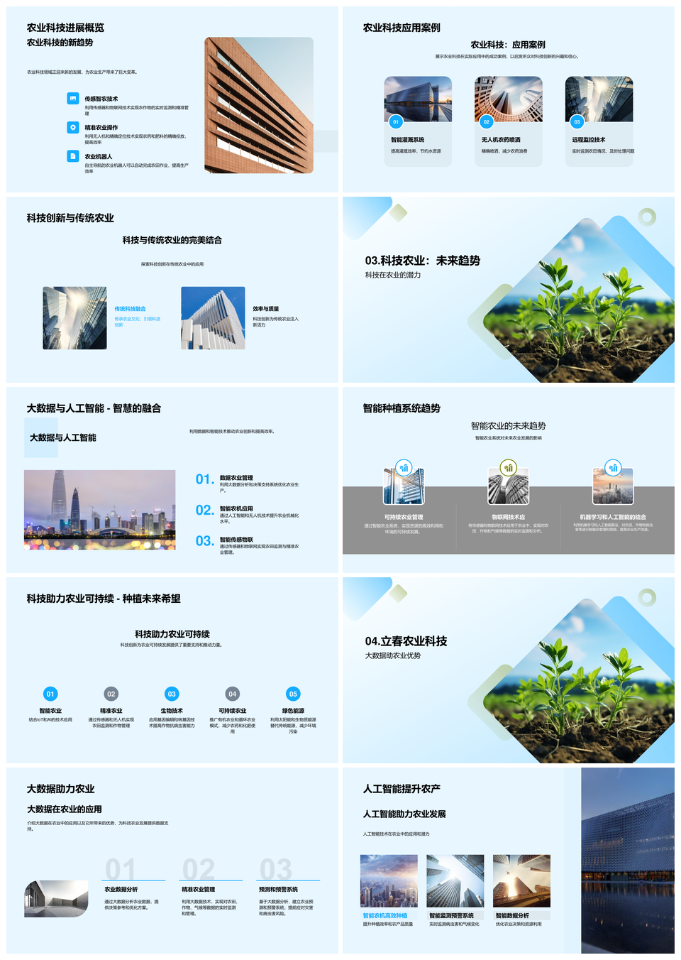 风云办公提供的智慧农业科技助力春播春耕PPT模板,下载格式为pptx,一共23页,作品中文字及图均可以修改和编辑,图片更改请在作品中右键图片并更换,文字修改请直接点击文字进行修改。