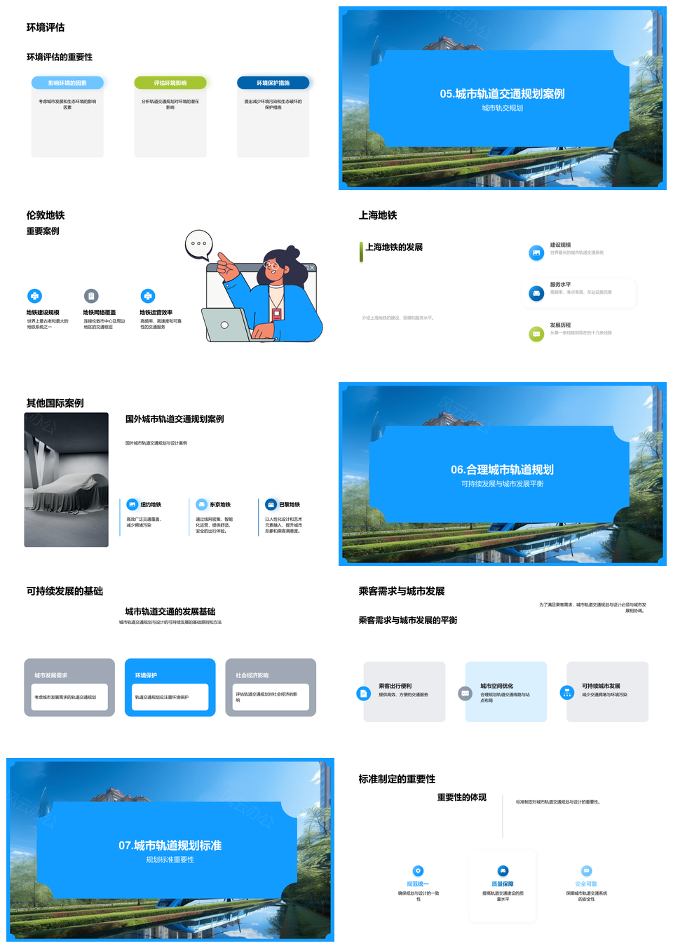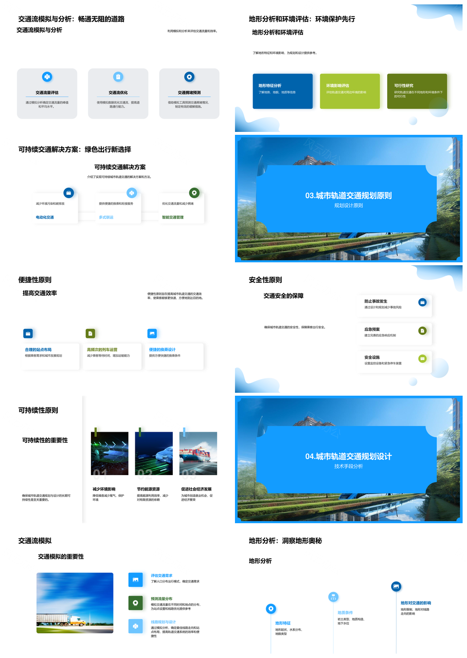 风云办公提供的城市轨道交通规划设计原则要素流程PPT模板,下载格式为pptx,一共29页,作品中文字及图均可以修改和编辑,图片更改请在作品中右键图片并更换,文字修改请直接点击文字进行修改。