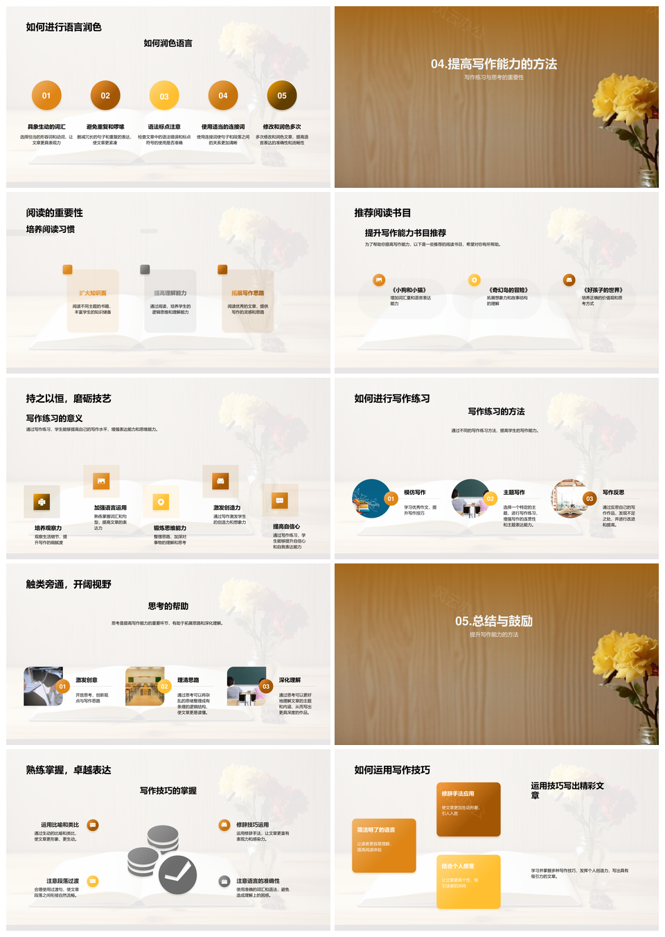 风云办公提供的写作技巧练习思考阅读润色指南PPT模板,下载格式为pptx,一共31页,作品中文字及图均可以修改和编辑,图片更改请在作品中右键图片并更换,文字修改请直接点击文字进行修改。