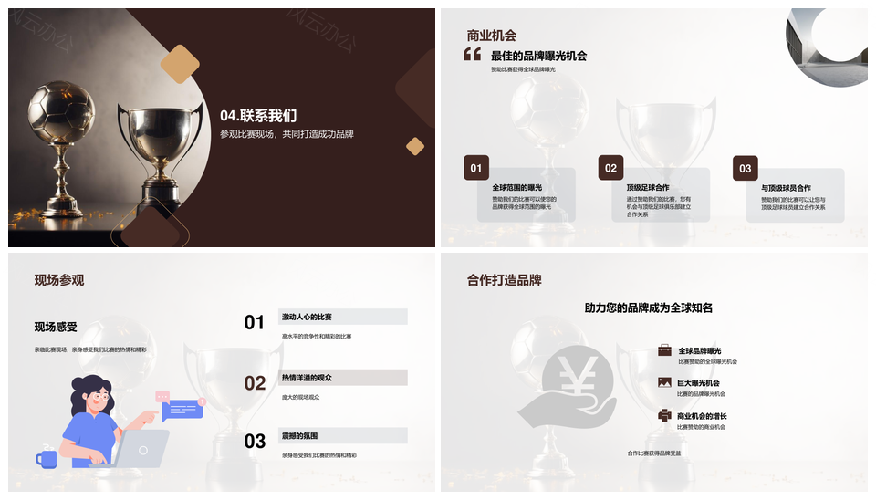 风云办公提供的国际顶级足球赛季赞助商机PPT模板,下载格式为pptx,一共22页,作品中文字及图均可以修改和编辑,图片更改请在作品中右键图片并更换,文字修改请直接点击文字进行修改。