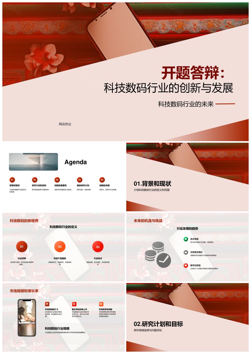 风云办公提供的科技数码行业创新发展趋势开题答辩PPT模板,下载格式为pptx,一共23页,作品中文字及图均可以修改和编辑,图片更改请在作品中右键图片并更换,文字修改请直接点击文字进行修改。