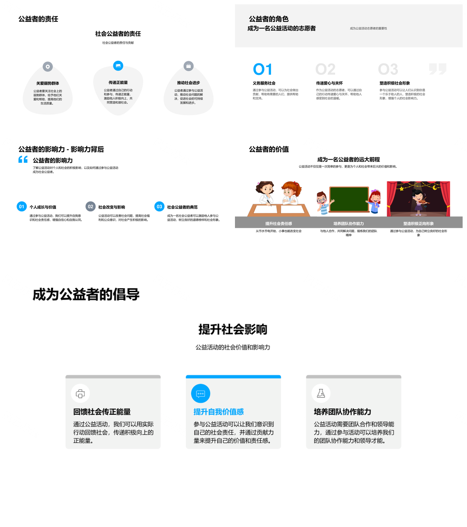 风云办公提供的校园公益之力社会责任与成长行动PPT模板,下载格式为pptx,一共33页,作品中文字及图均可以修改和编辑,图片更改请在作品中右键图片并更换,文字修改请直接点击文字进行修改。