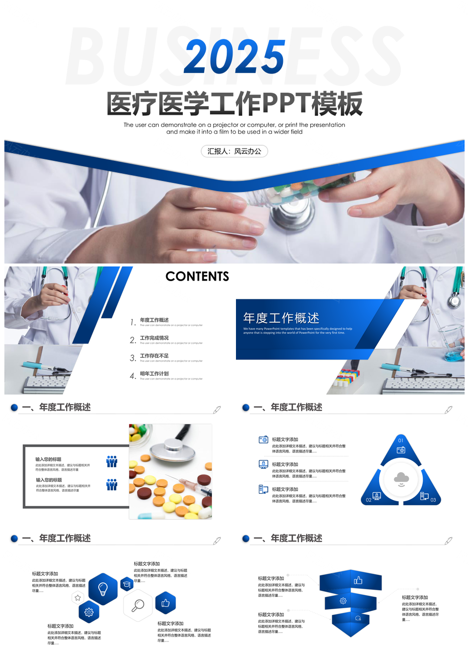 风云办公提供的2025简约风医学工作汇报PPT模板,下载格式为pptx,一共28页,作品中文字及图均可以修改和编辑,图片更改请在作品中右键图片并更换,文字修改请直接点击文字进行修改。