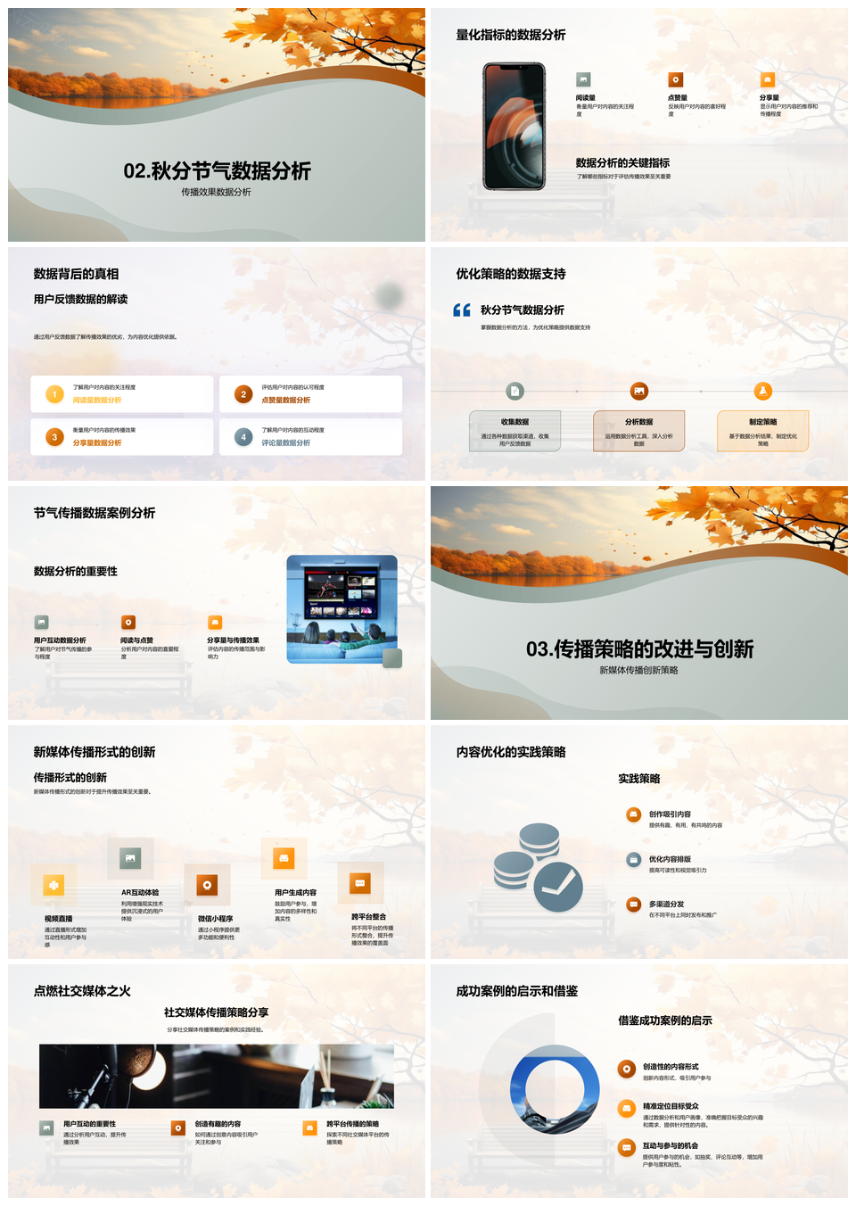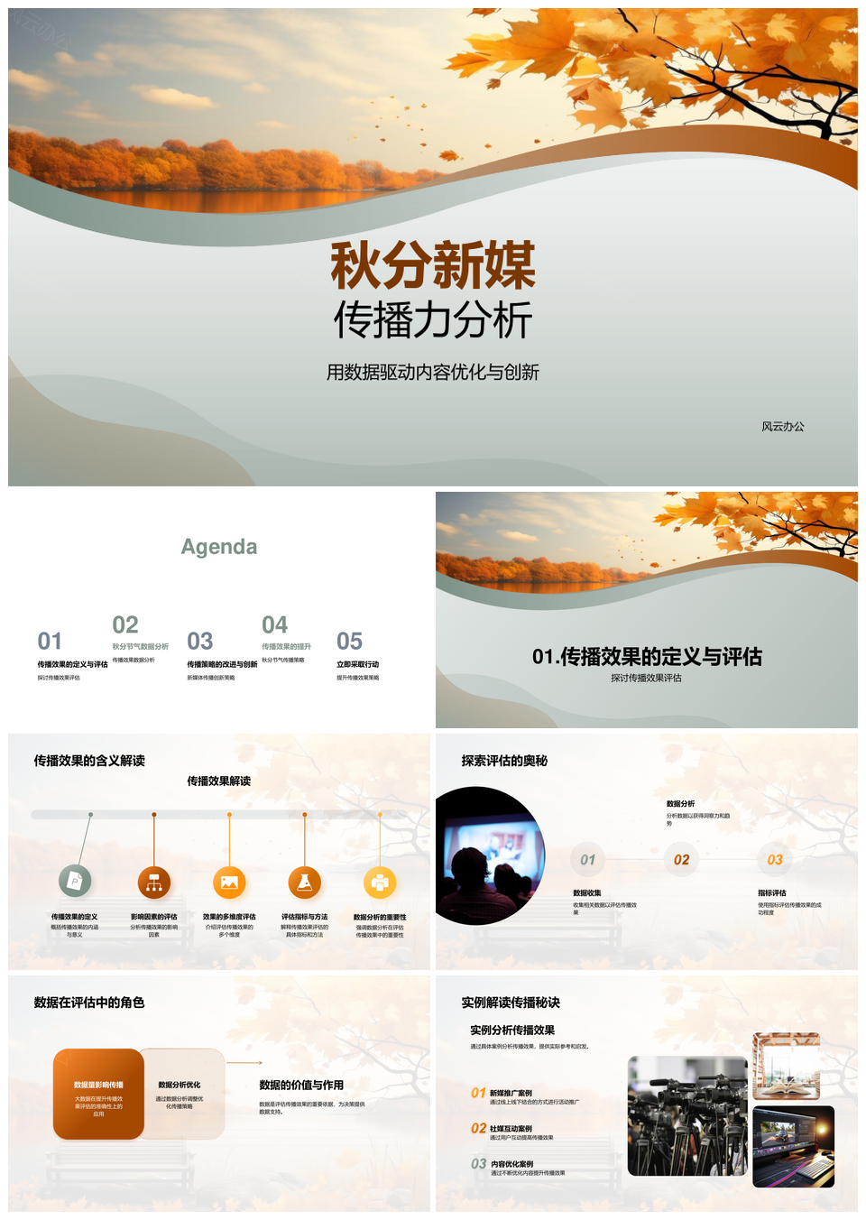 风云办公提供的秋分新媒体数据驱动传播效果评估优化PPT模板,下载格式为pptx,一共28页,作品中文字及图均可以修改和编辑,图片更改请在作品中右键图片并更换,文字修改请直接点击文字进行修改。
