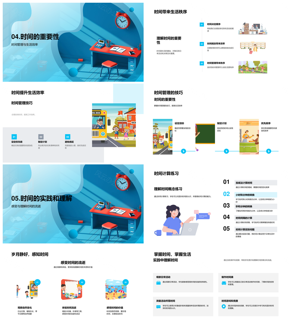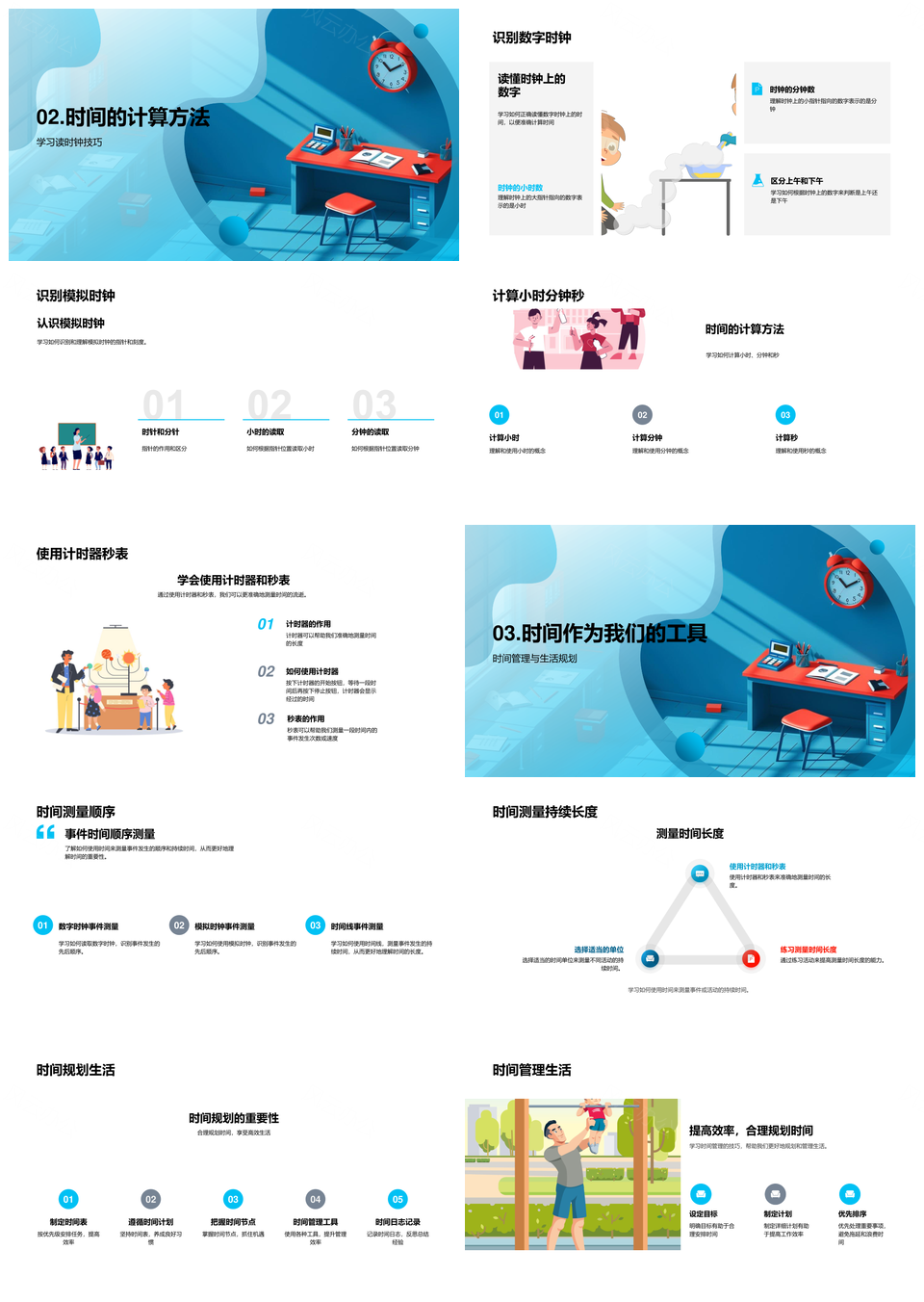 风云办公提供的小学二年级时间知识管理计时器教学PPT模板,下载格式为pptx,一共26页,作品中文字及图均可以修改和编辑,图片更改请在作品中右键图片并更换,文字修改请直接点击文字进行修改。