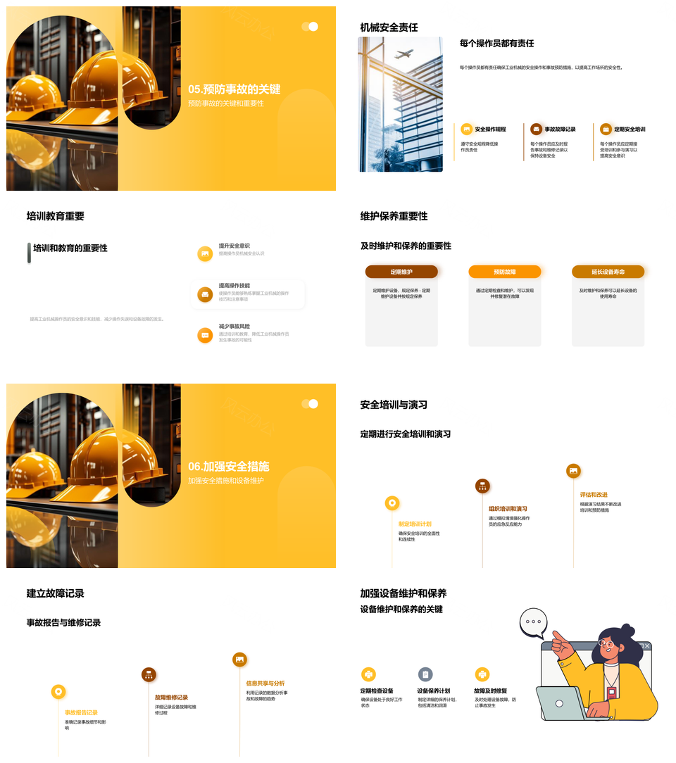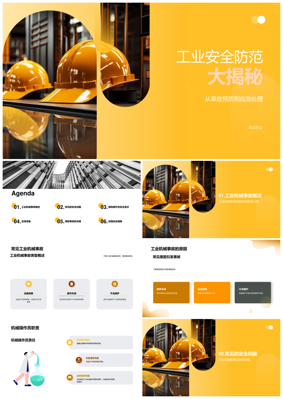 风云办公提供的工业机械安全操作与事故预防措施解析PPT模板,下载格式为pptx,一共26页,作品中文字及图均可以修改和编辑,图片更改请在作品中右键图片并更换,文字修改请直接点击文字进行修改。