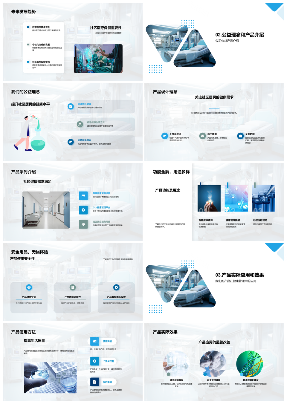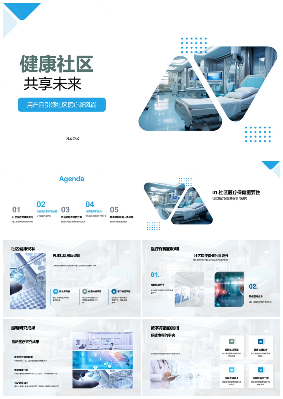 风云办公提供的健康社区公益医健产品创领新风尚PPT模板,下载格式为pptx,一共33页,作品中文字及图均可以修改和编辑,图片更改请在作品中右键图片并更换,文字修改请直接点击文字进行修改。