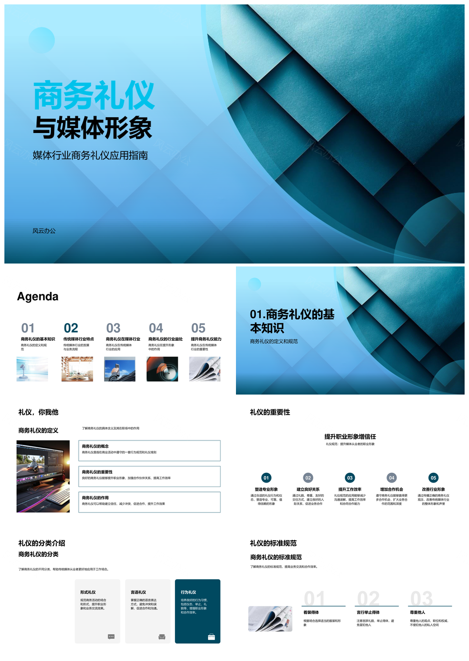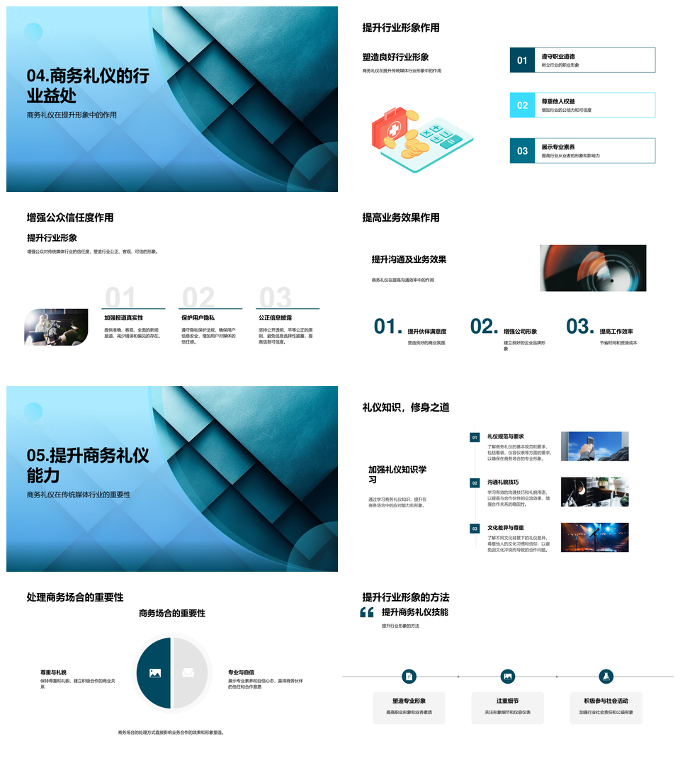 商务礼仪媒体形象传统媒体培训顾问职场合作应用PPT模板推荐