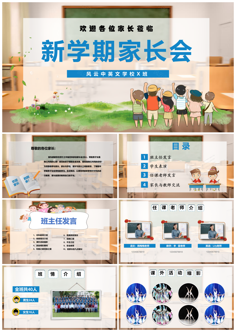这是一张卡通风新学期家长会PPT模板,包含卡通风、新学期、家长会等主题内容,也可用作卡通、通风、新学期、家长会 卡通通风新学期家长会、卡通通风新学期、卡通通风家长会、卡通新学期家长会、通风新学期家长会、卡通通风、卡通新学期、卡通家长会、通风新学期、通风家长会、新学期家长会等PPT场景使用。 风云办公提供的卡通风新学期家长会PPT模板,下载格式为pptx,一共22页,作品中文字及图均可以修改和编辑,图片更改请在作品中右键图片并更换,文字修改请直接点击文字进行修改。