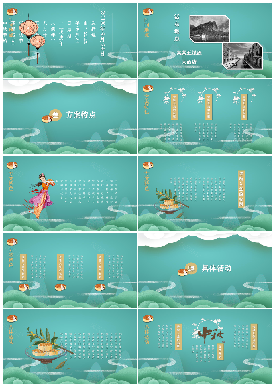 风云办公提供的中秋主题活动策划方案PPT模板,下载格式为pptx,一共23页,作品中文字及图均可以修改和编辑,图片更改请在作品中右键图片并更换,文字修改请直接点击文字进行修改。