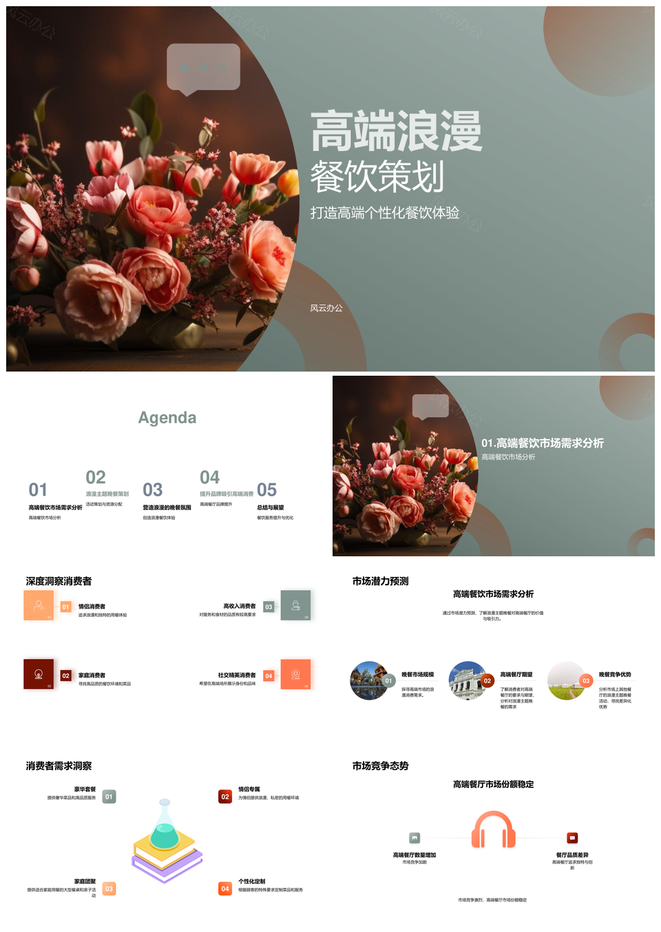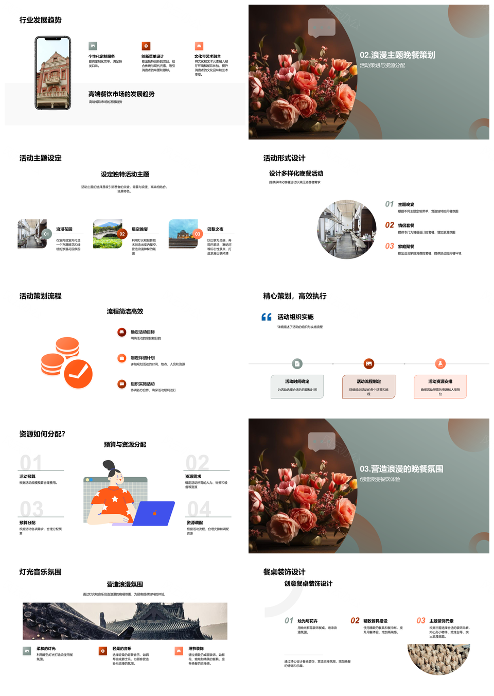 高端浪漫主题餐饮活动策划与品牌营销策略PPT模板推荐