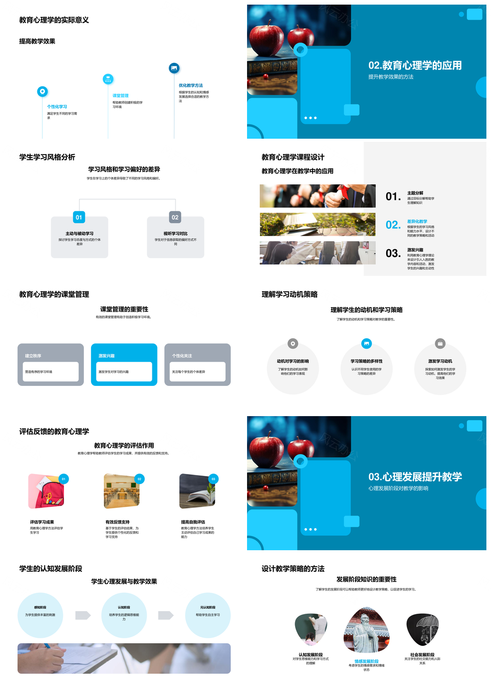 这是一张教育心理学学习风格课堂管理认知发展策略PPT模板,包含教育心理学、学习风格、课堂管理、认知发展、策略等主题内容,也可用作教育心理学学习风格课堂管理、教育心理学课堂管理认知发展、教育心理学学习风格认知、课堂管理认知发展策略、学习风格课堂管理认知发展、教育心理学认知发展策略、课堂管理策略教育心理学、学习风格认知发展策略、教育课堂管理认知发展、心理学学习风格课堂管理、教育心理学课堂管理、学习风格课堂管理、课堂管理认知发展、教育认知发展策略、学习认知发展策略等PPT场景使用。 风云办公提供的教育心理学学习风格课堂管理认知发展策略PPT模板,下载格式为pptx,一共33页,作品中文字及图均可以修改和编辑,图片更改请在作品中右键图片并更换,文字修改请直接点击文字进行修改。