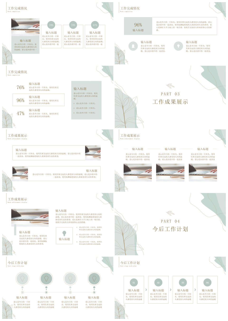 蓝色工作汇报总结计划清新极简约风商务风PPT模板