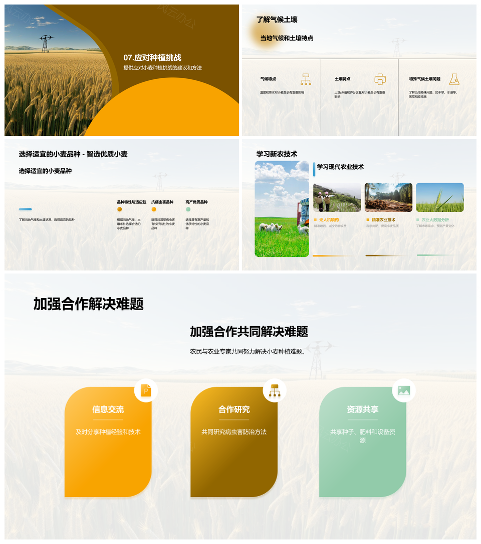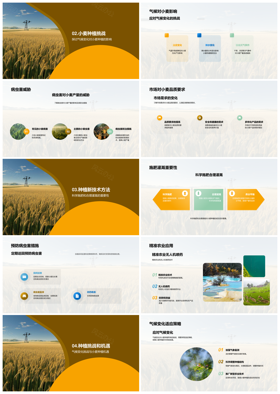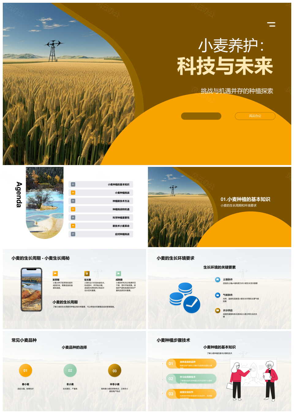 风云办公提供的科技赋能小麦种植品种田管发展趋势PPT模板,下载格式为pptx,一共33页,作品中文字及图均可以修改和编辑,图片更改请在作品中右键图片并更换,文字修改请直接点击文字进行修改。