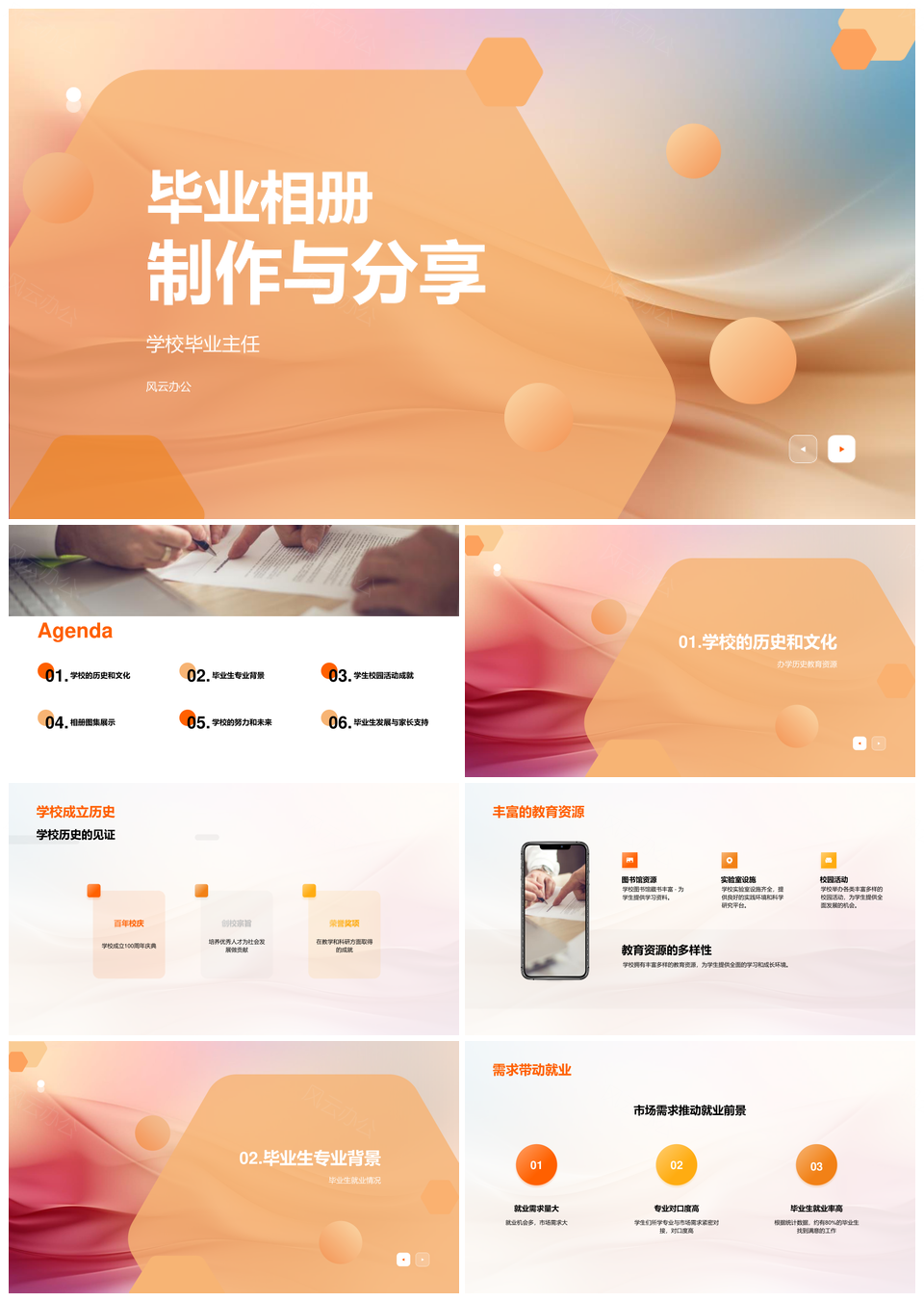 风云办公提供的毕业相册制作与分享指南PPT模板,下载格式为pptx,一共20页,作品中文字及图均可以修改和编辑,图片更改请在作品中右键图片并更换,文字修改请直接点击文字进行修改。