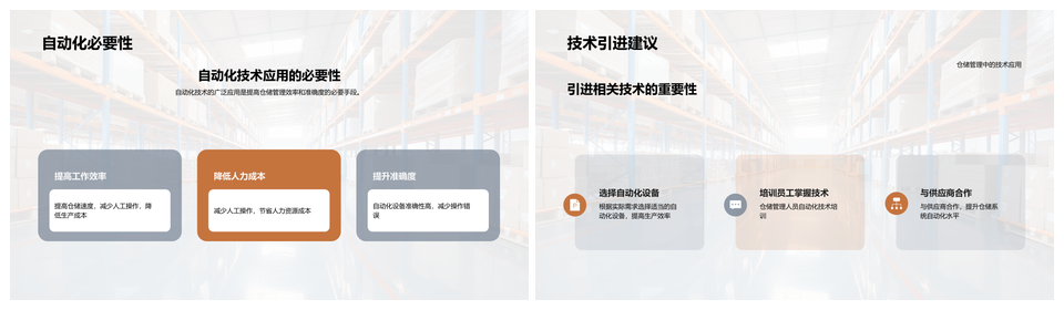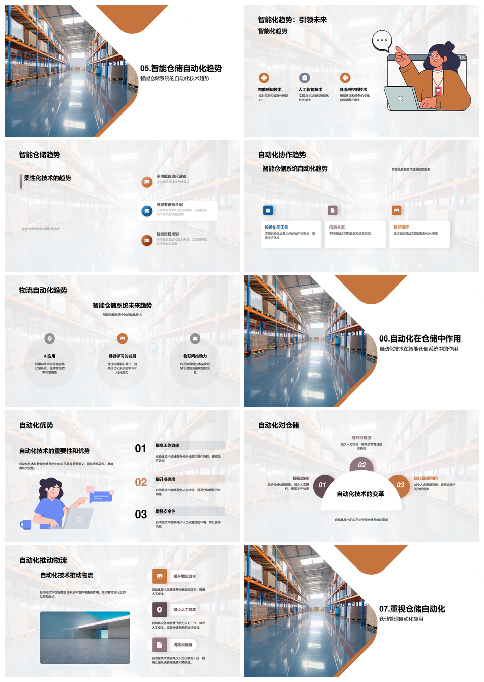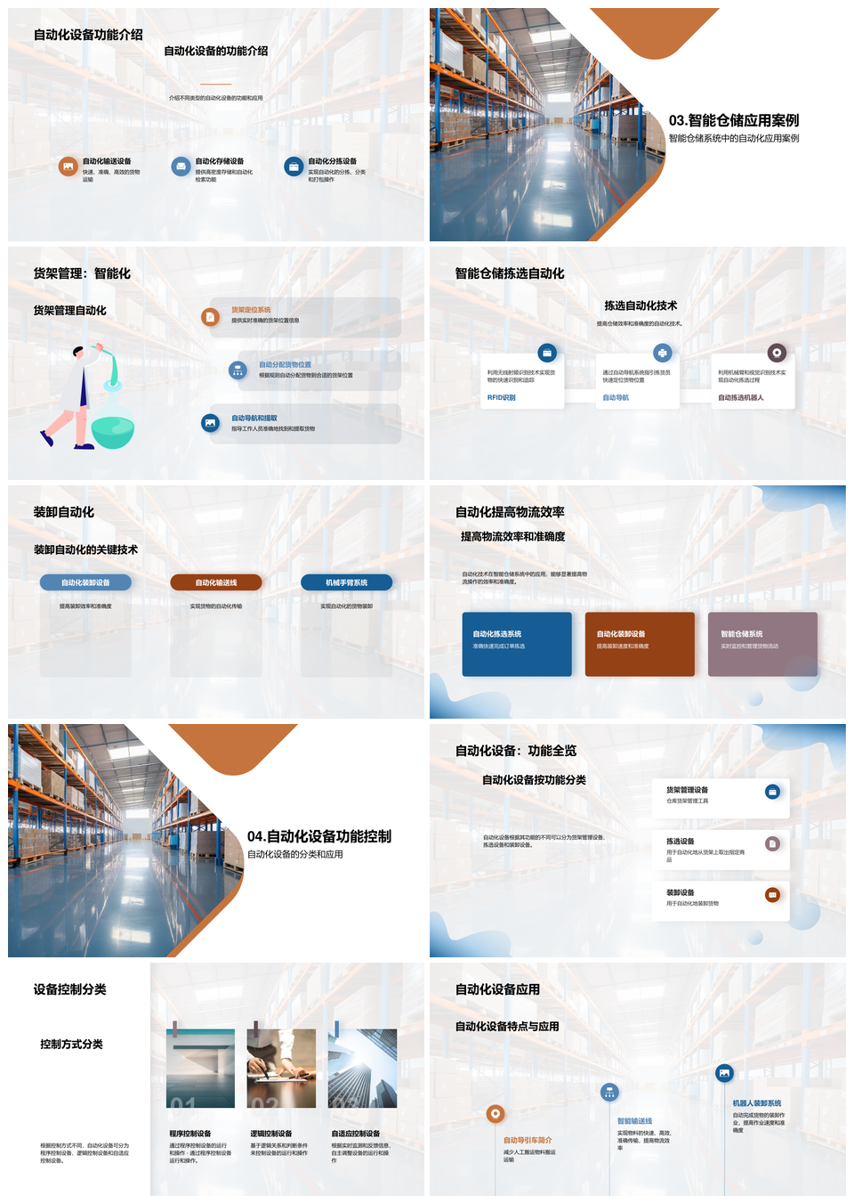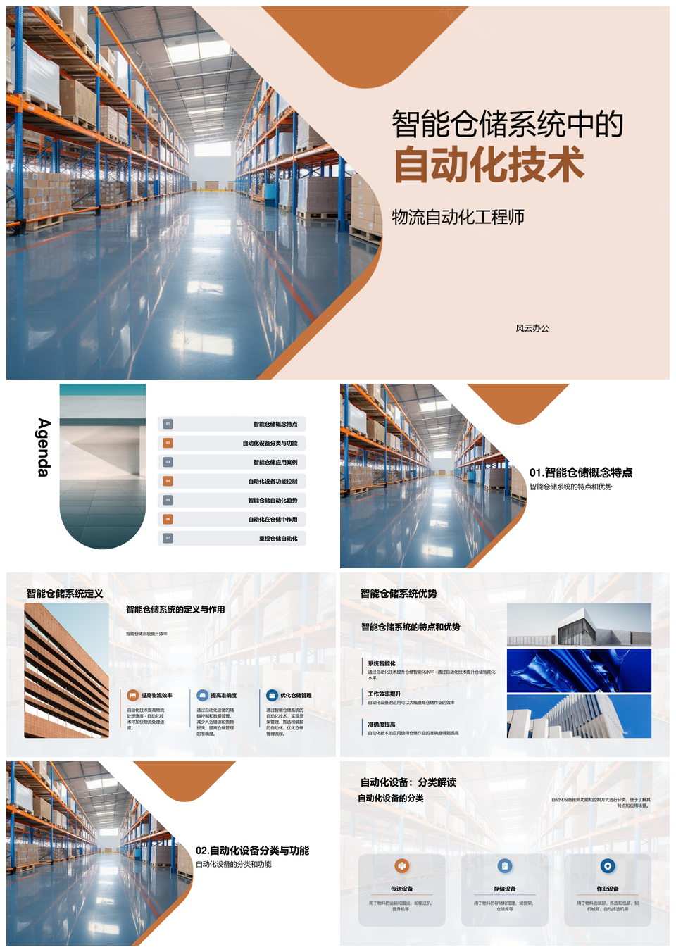 这是一张智能仓储物流自动化技术与管理PPT模板,包含智能、仓储、物流、自动化、技术、管理等主题内容,也可用作智能仓储物流自动化、仓储物流自动化技术、物流自动化技术管理、智能仓储物流、仓储物流自动化、物流自动化技术、自动化技术管理、智能仓储、仓储物流、物流自动化、自动化技术、技术管理等PPT场景使用。 风云办公提供的智能仓储物流自动化技术与管理PPT模板,下载格式为pptx,一共30页,作品中文字及图均可以修改和编辑,图片更改请在作品中右键图片并更换,文字修改请直接点击文字进行修改。