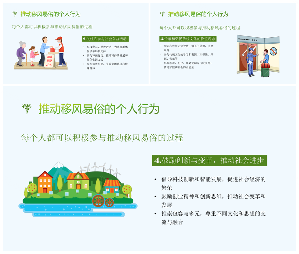 这是一张绿色卡通移风易俗新风主题宣讲课件,包含绿色、卡通、移风易俗、新风、主题、宣讲、课件等主题内容,也可用作绿色卡通移风易俗新风、移风易俗新风主题宣讲、绿色卡通主题宣讲课件、移风易俗新风主题、新风主题宣讲课件、绿色移风易俗新风、卡通移风易俗主题、新风主题宣讲、移风易俗主题宣讲、绿色卡通移风易俗、绿色卡通主题、主题宣讲课件、绿色卡通、移风易俗新风、主题宣讲、宣讲课件等PPT场景使用。