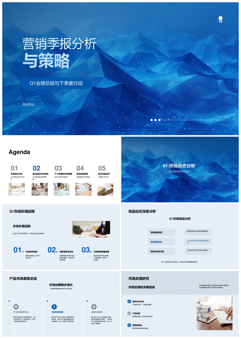 风云办公提供的Q1营销总结市场分析下季策略PPT模板,下载格式为pptx,一共32页,作品中文字及图均可以修改和编辑,图片更改请在作品中右键图片并更换,文字修改请直接点击文字进行修改。