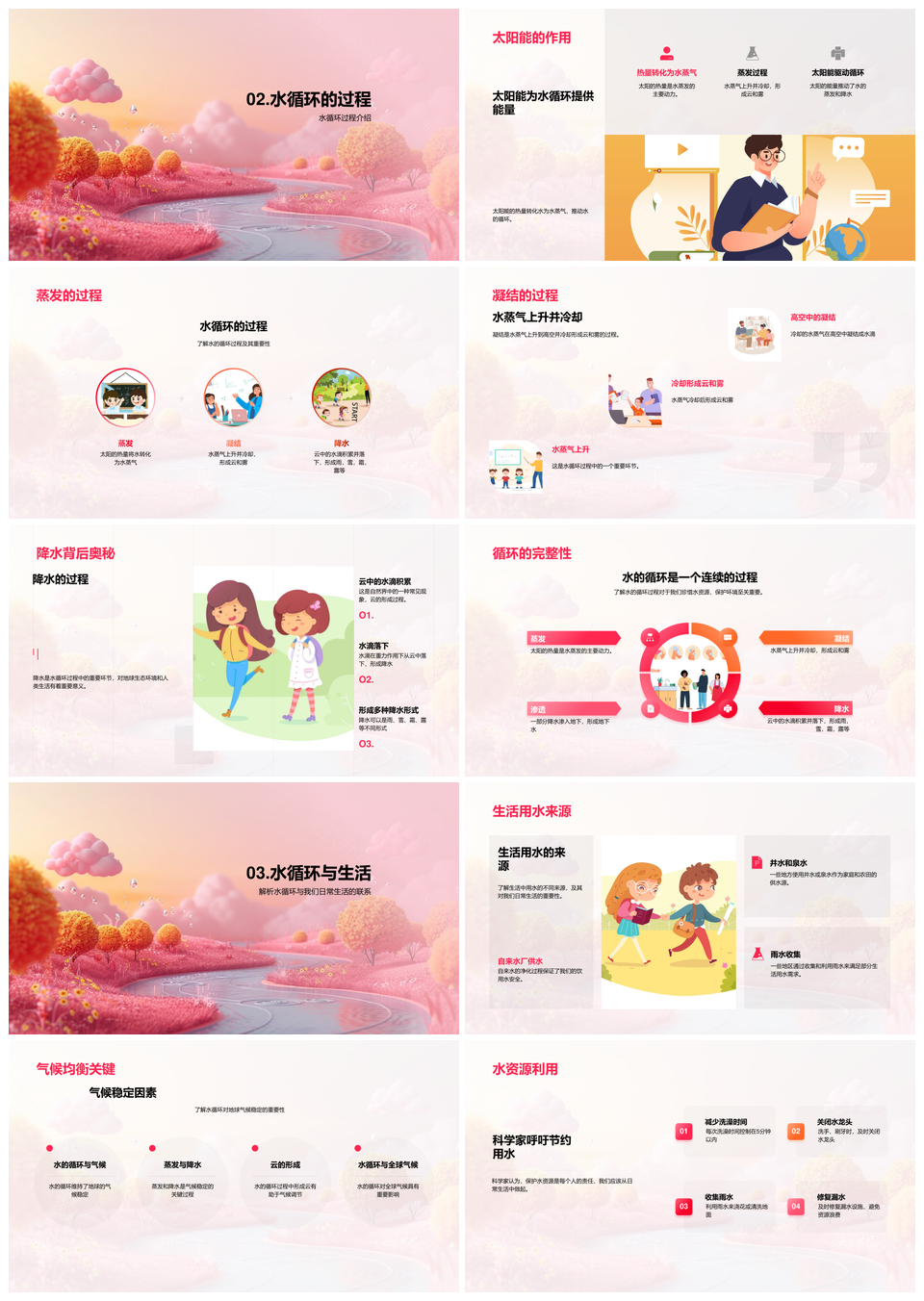 2025水循环节水护源蒸发凝结降水稳生态气候PPT模板推荐