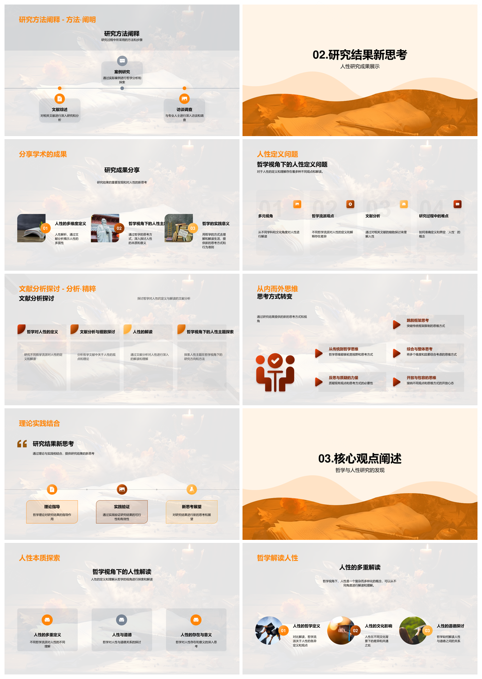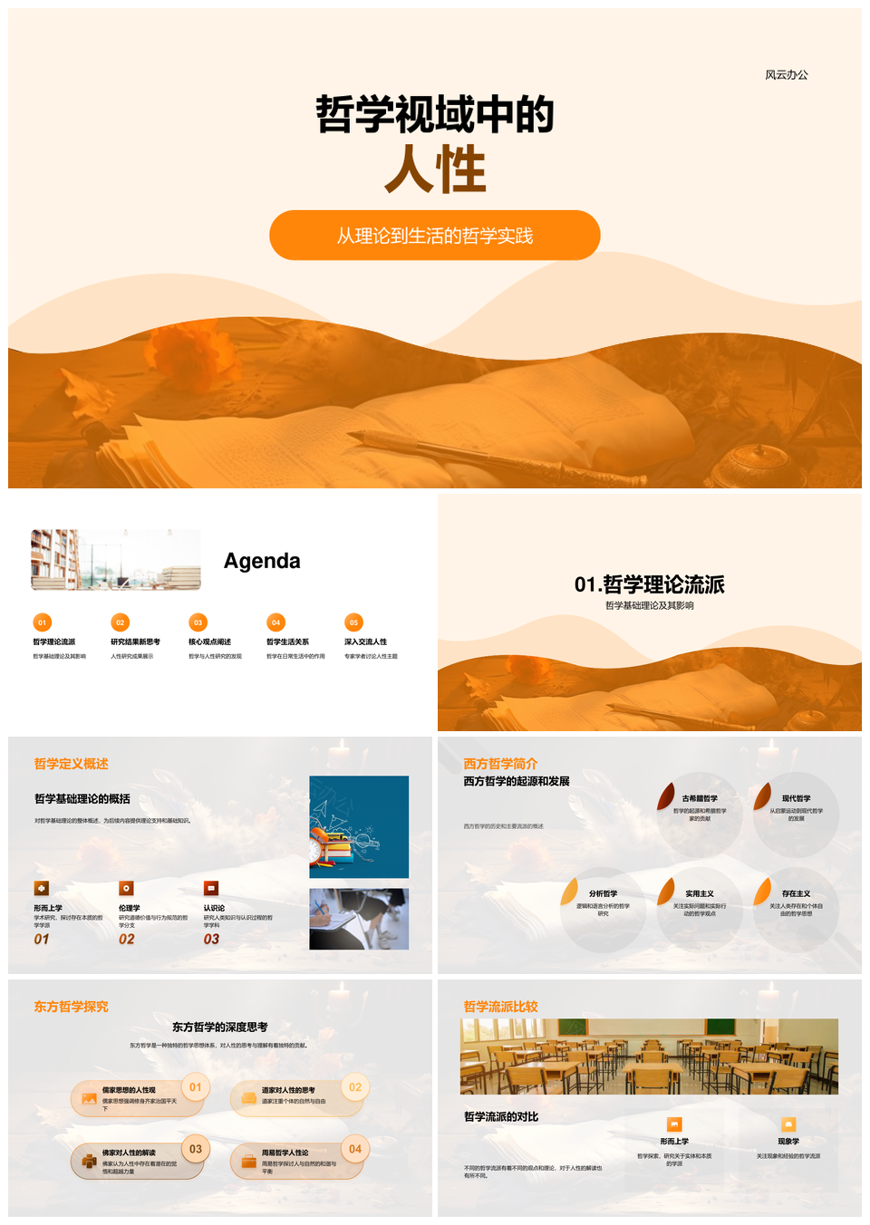 风云办公提供的东西方哲学人性理论实践与文献探析PPT模板,下载格式为pptx,一共33页,作品中文字及图均可以修改和编辑,图片更改请在作品中右键图片并更换,文字修改请直接点击文字进行修改。