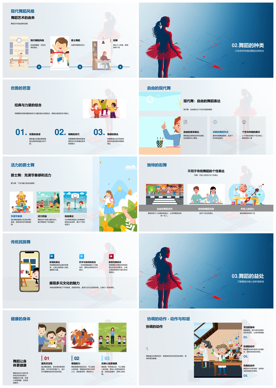 舞蹈艺术教学史技芭蕾现代爵士街舞身心益处PPT模板