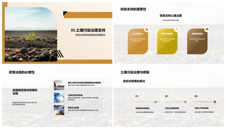 这是一张土壤污染治理修复守护生态健康PPT模板,包含土壤污染、治理修复、守护、生态健康等主题内容,也可用作土壤污染治理修复、污染治理修复守护、治理修复守护生态、修复守护生态健康、土壤污染治理、污染治理修复、治理修复守护、修复守护生态、守护生态健康、土壤污染、污染治理、治理修复、修复守护、守护生态、生态健康等PPT场景使用。