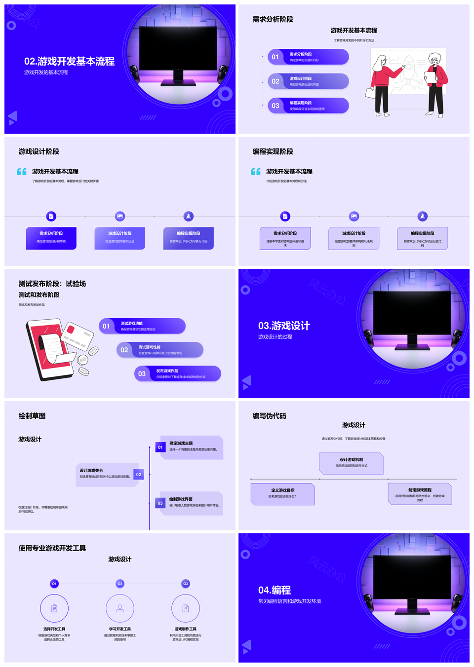 游戏开发流程原理与计算机科学基础系统网络数据库手柄PPT模板