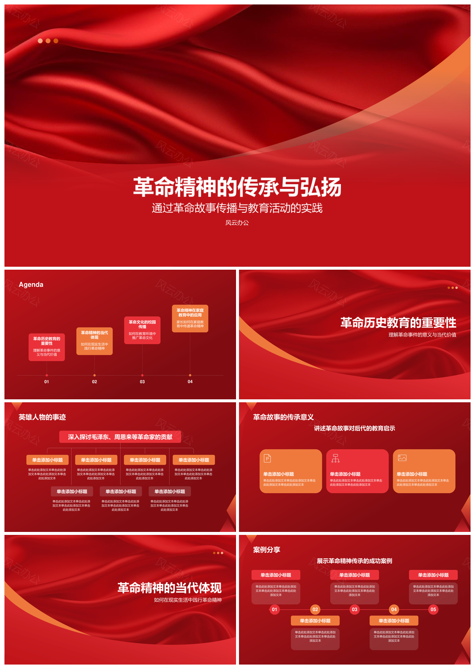 风云办公提供的革命精神英雄事迹重大事件传承启示PPT模板,下载格式为pptx,一共15页,作品中文字及图均可以修改和编辑,图片更改请在作品中右键图片并更换,文字修改请直接点击文字进行修改。