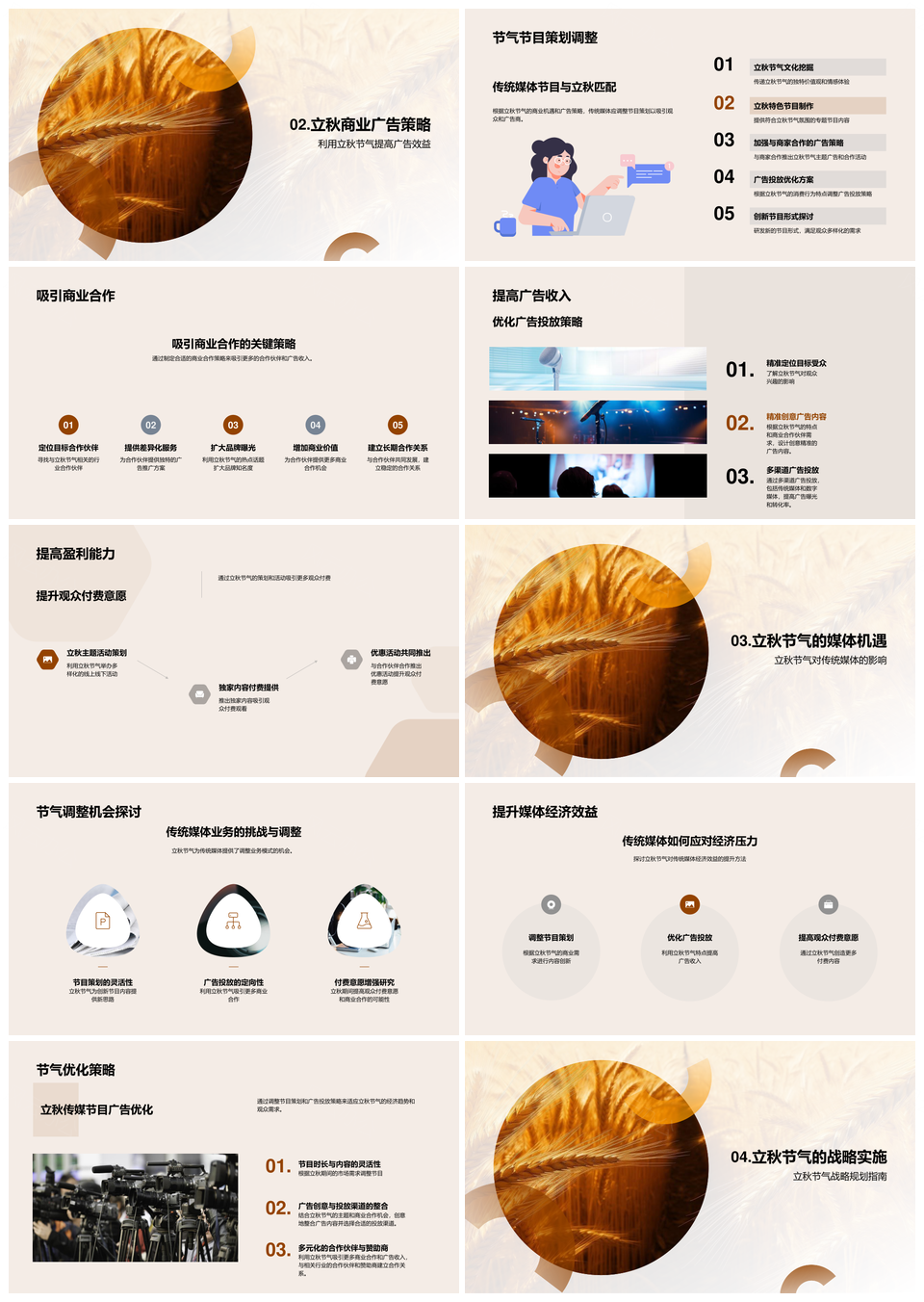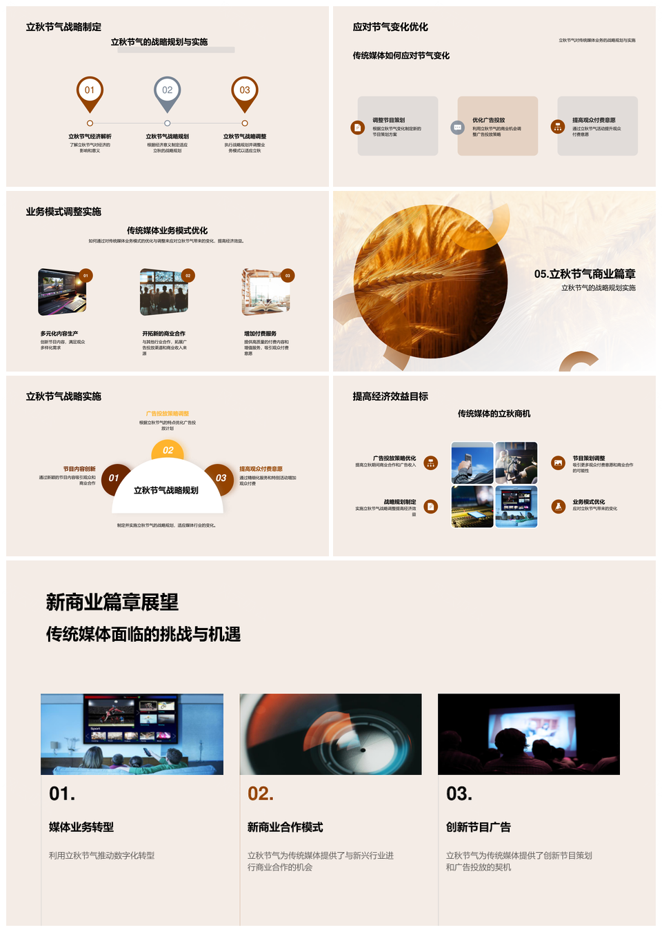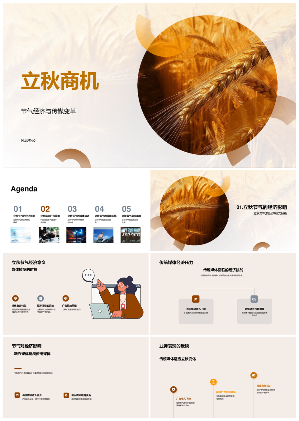 风云办公提供的立秋商机传媒变革节气经济策略PPT模板,下载格式为pptx,一共25页,作品中文字及图均可以修改和编辑,图片更改请在作品中右键图片并更换,文字修改请直接点击文字进行修改。