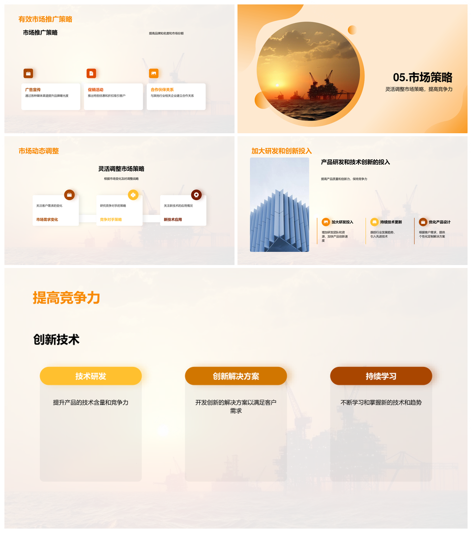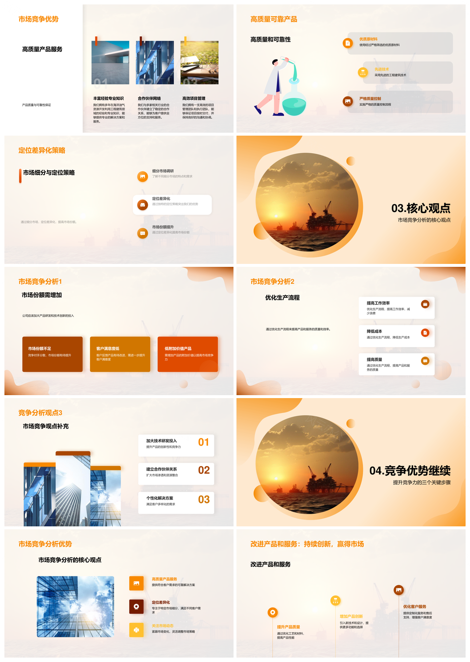 这是一张海洋油气市场竞争趋势与钻井平台优势分析PPT模板,包含海洋油气市场、竞争趋势、钻井平台、优势分析等主题内容,也可用作海洋油气市场竞争趋势、油气市场竞争趋势分析、市场竞争趋势分析、钻井平台优势分析、海洋油气市场、油气市场竞争、市场竞争趋势、竞争趋势分析、海洋钻井平台、油气市场分析、钻井平台优势、优势分析、海洋油气、油气市场、钻井平台等PPT场景使用。 风云办公提供的海洋油气市场竞争趋势与钻井平台优势分析PPT模板,下载格式为pptx,一共23页,作品中文字及图均可以修改和编辑,图片更改请在作品中右键图片并更换,文字修改请直接点击文字进行修改。