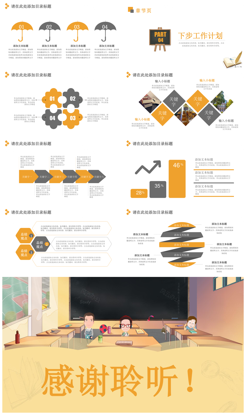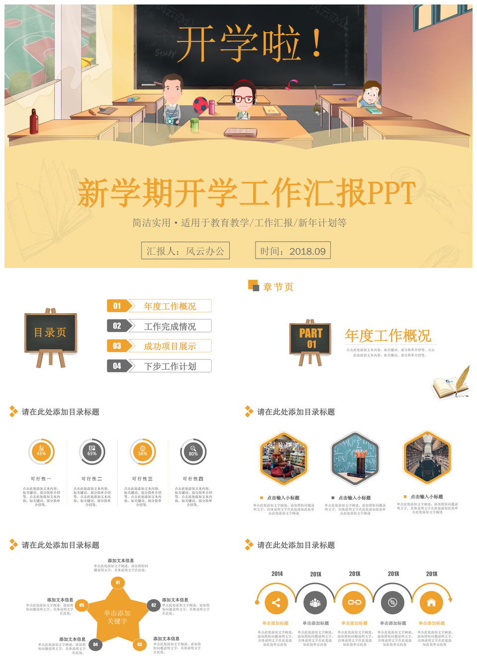 黄色可爱卡通开学季校园培训商务风工作汇报总结PPT模板