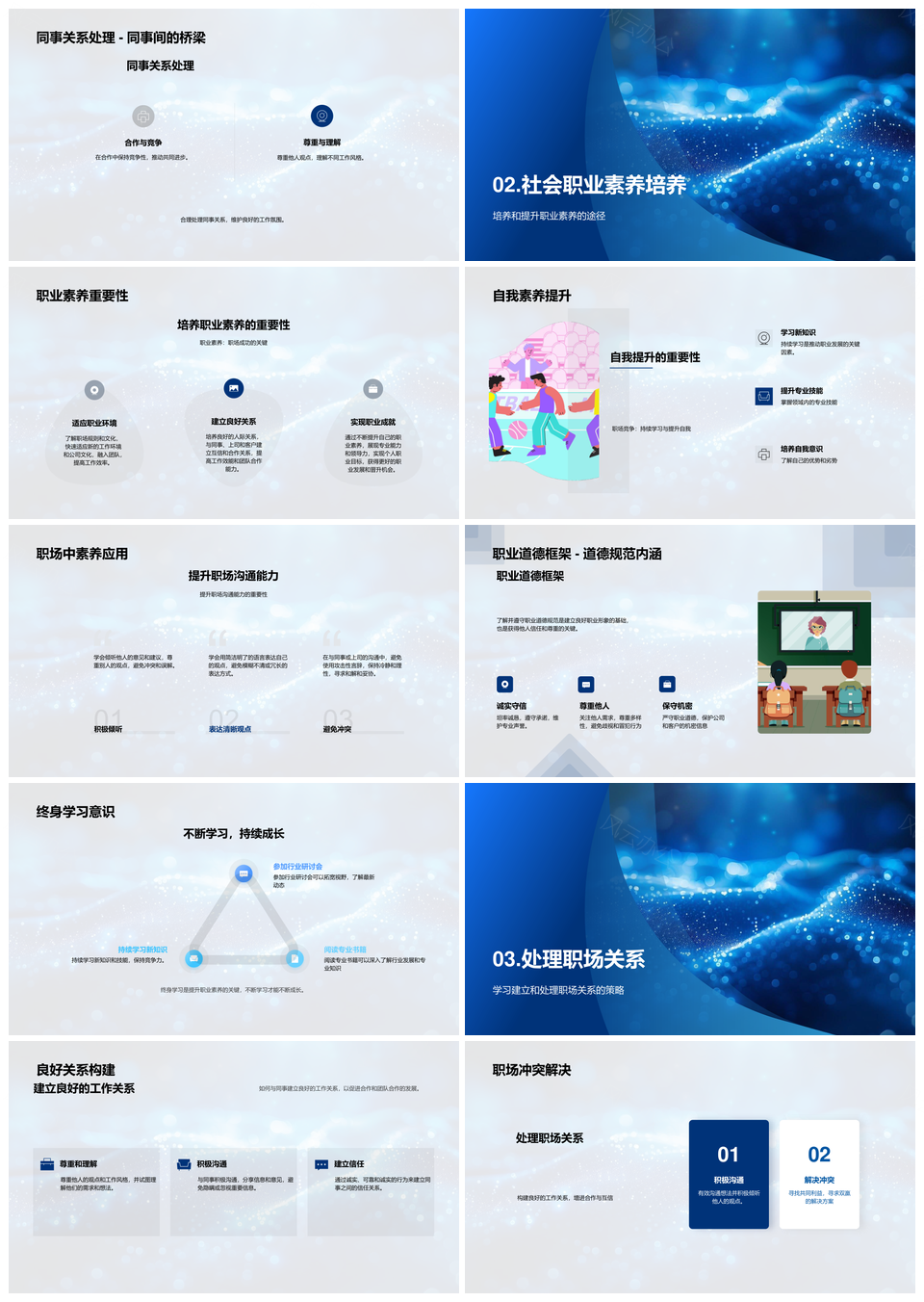 这是一张职场礼仪职业素养待人接物表达策略上司交流职场关系公司文化PPT模板,包含职场礼仪、职业素养、待人接物、表达策略、上司交流、职场关系、公司文化等主题内容,也可用作职场礼仪职业素养待人接物、职业素养待人接物表达策略、待人接物表达策略上司交流、表达策略上司交流职场关系、上司交流职场关系公司文化、职场礼仪职业素养待人、职业素养待人接物表达、待人接物表达策略上司、表达策略上司交流职场、上司交流职场关系公司、职场礼仪职业素养、职业素养待人接物、待人接物表达策略、表达策略上司交流、上司交流职场关系等PPT场景使用。 风云办公提供的职场礼仪职业素养待人接物表达策略上司交流职场关系公司文化PPT模板,下载格式为pptx,一共33页,作品中文字及图均可以修改和编辑,图片更改请在作品中右键图片并更换,文字修改请直接点击文字进行修改。