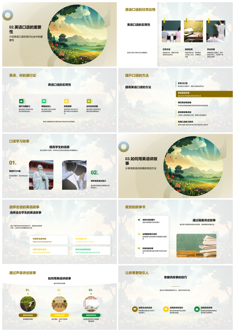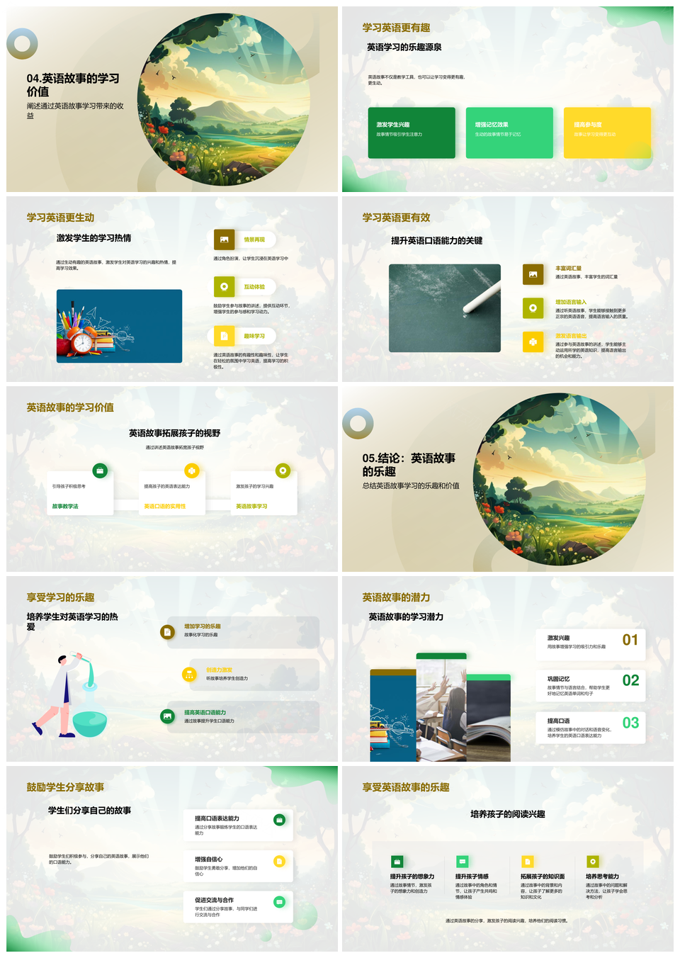 这是一张故事教学提升英语口语能力PPT模板,包含故事教学、提升、英语口语能力等主题内容,也可用作故事教学提升英语、教学提升英语口语、提升英语口语能力、故事教学提升、教学提升英语、提升英语口语、英语口语能力、故事教学、教学提升、提升英语、英语口语、口语能力等PPT场景使用。 风云办公提供的故事教学提升英语口语能力PPT模板,下载格式为pptx,一共28页,作品中文字及图均可以修改和编辑,图片更改请在作品中右键图片并更换,文字修改请直接点击文字进行修改。