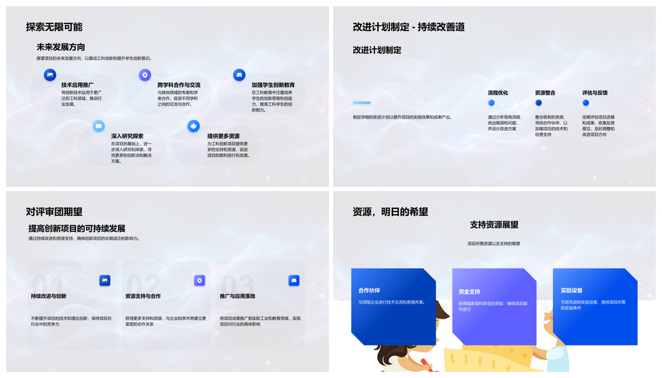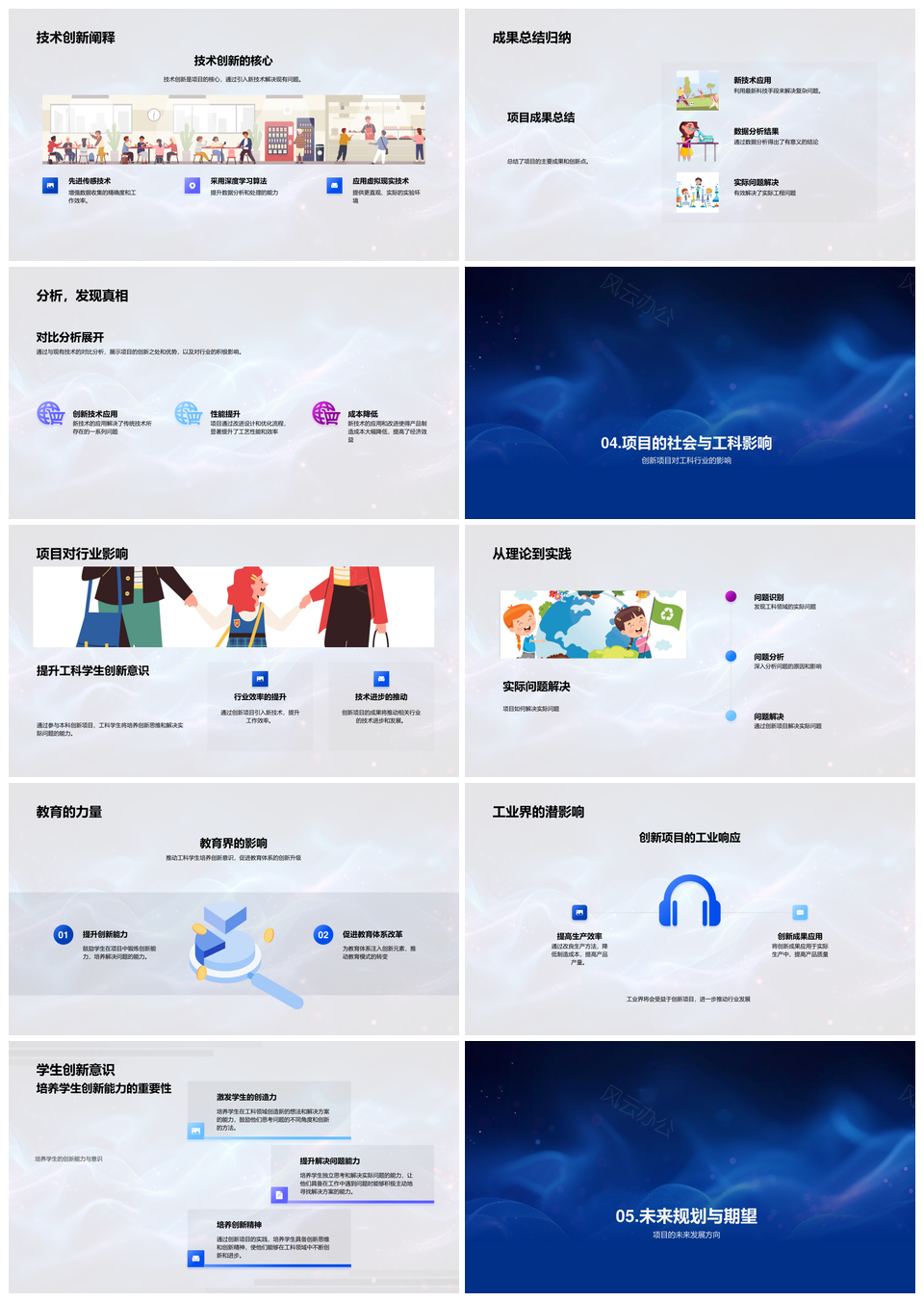 风云办公提供的工科创新项目理论实践成果与未来展望PPT模板,下载格式为pptx,一共32页,作品中文字及图均可以修改和编辑,图片更改请在作品中右键图片并更换,文字修改请直接点击文字进行修改。