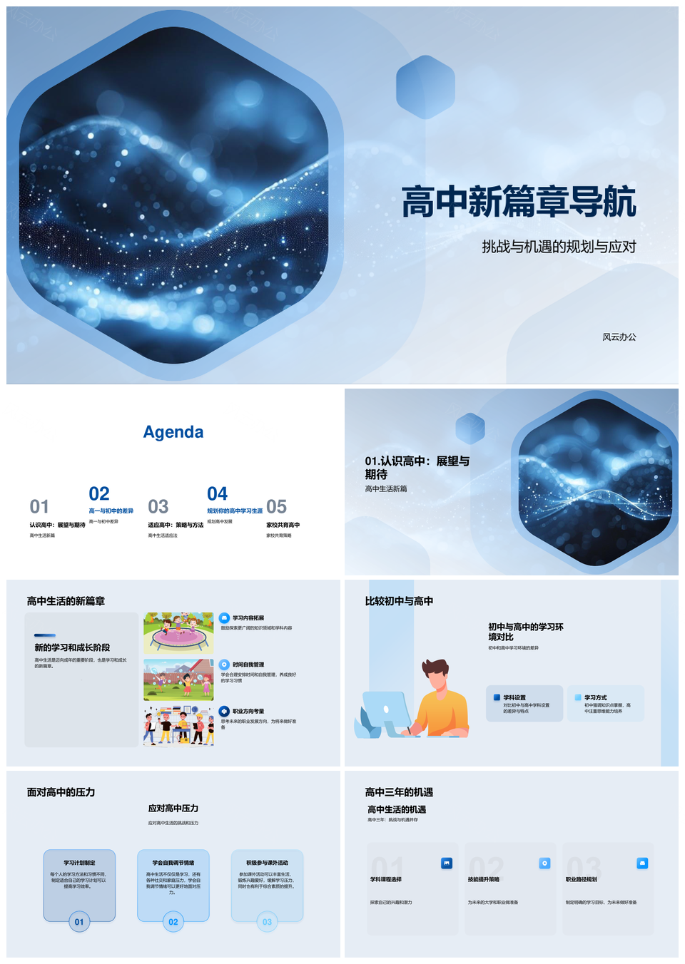 风云办公提供的2025高中新生活学习负担变化导航PPT模板,下载格式为pptx,一共28页,作品中文字及图均可以修改和编辑,图片更改请在作品中右键图片并更换,文字修改请直接点击文字进行修改。