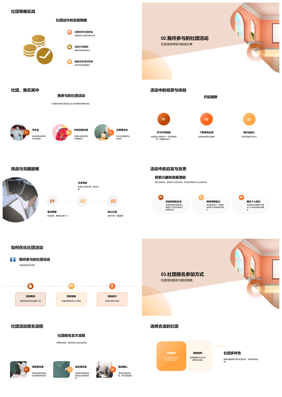 学生社团活动运作挖掘潜力塑造自我之旅PPT模板推荐