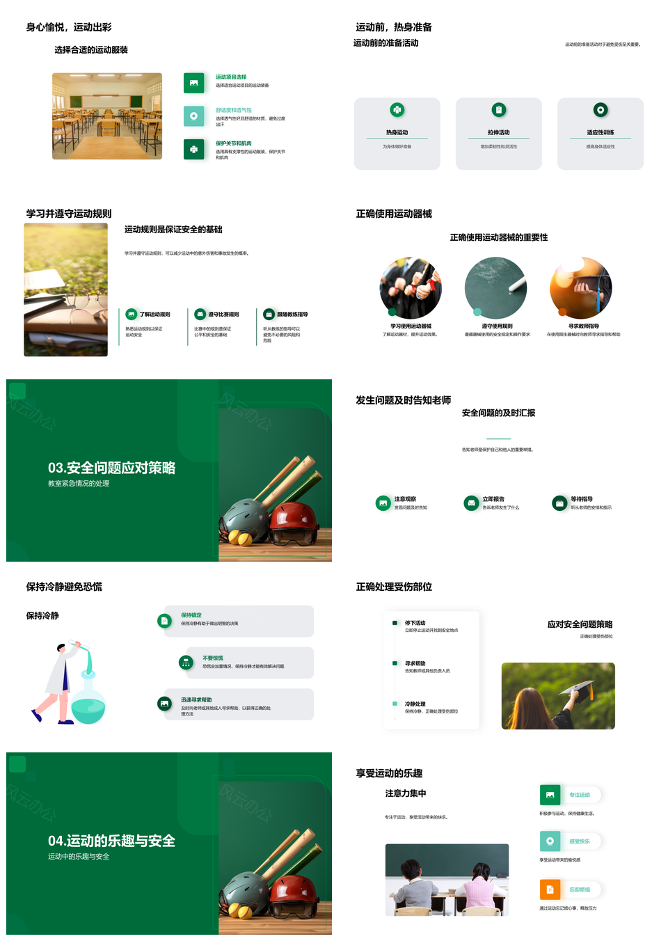 这是一张运动器械服装准备防摔倒撞伤保安全快乐PPT模板,包含运动器械、服装、准备、防摔倒、撞伤、保安、全快乐等主题内容,也可用作运动器械服装准备防摔倒、服装准备防摔倒撞伤、准备防摔倒撞伤保安全、防摔倒撞伤保安全快乐、运动器械服装准备、服装准备防摔倒、准备防摔倒撞伤、防摔倒撞伤保安全、撞伤保安全快乐、运动器械服装、服装准备、准备防摔倒、防摔倒撞伤、撞伤保安全、保安全快乐等PPT场景使用。 风云办公提供的运动器械服装准备防摔倒撞伤保安全快乐PPT模板,下载格式为pptx,一共24页,作品中文字及图均可以修改和编辑,图片更改请在作品中右键图片并更换,文字修改请直接点击文字进行修改。