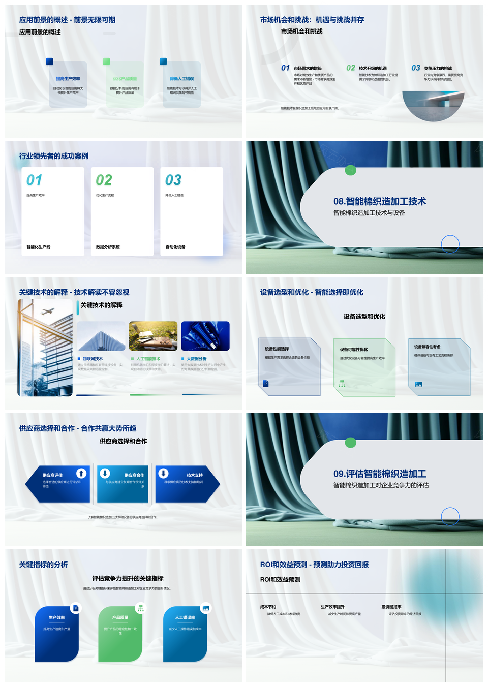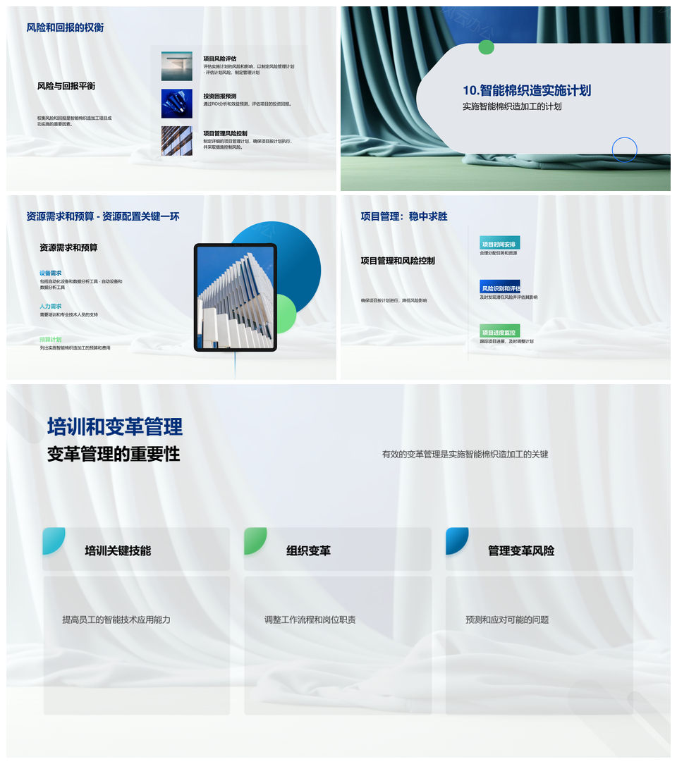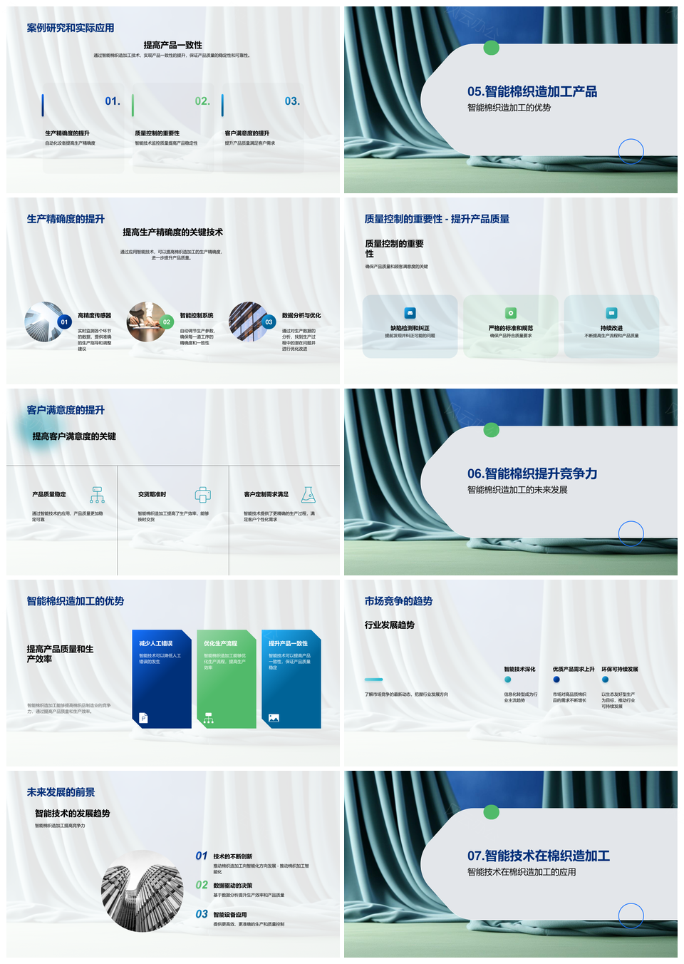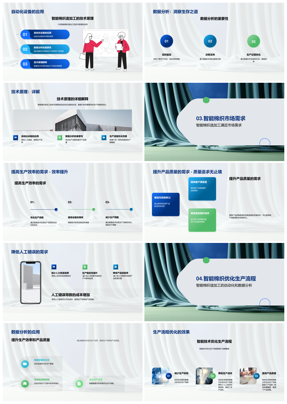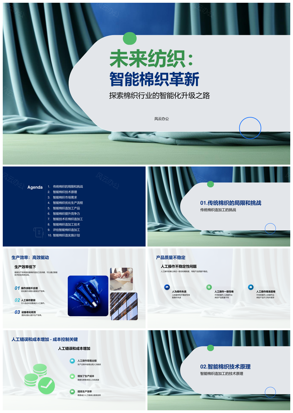 风云办公提供的智能棉织自动化增效优产PPT模板,下载格式为pptx,一共43页,作品中文字及图均可以修改和编辑,图片更改请在作品中右键图片并更换,文字修改请直接点击文字进行修改。