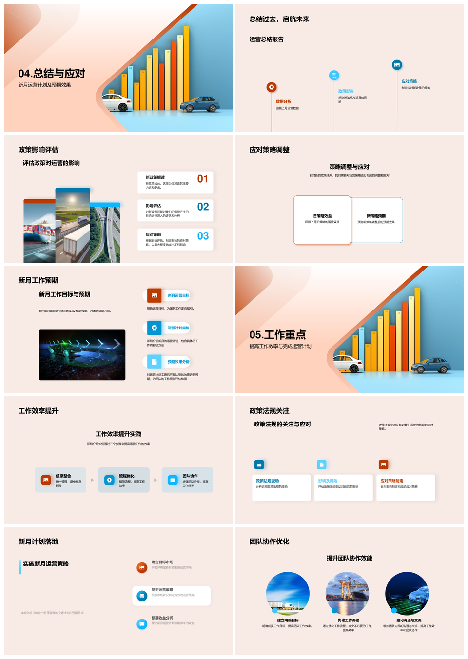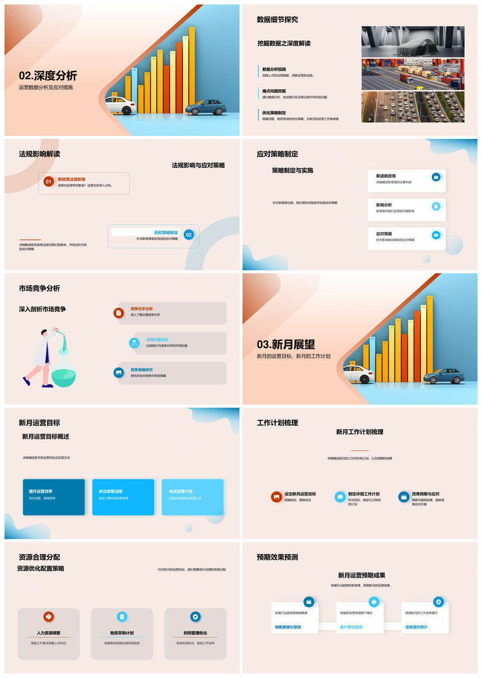 这是一张上月运营数据趋势法规分析目标计划预期图表PPT模板,包含上月、运营数据、趋势、法规、分析、目标、计划、预期、图表等主题内容,也可用作上月运营数据趋势、运营数据趋势法规、数据趋势法规分析、趋势法规分析目标、法规分析目标计划、分析目标计划预期、目标计划预期图表、上月运营数据、运营数据趋势、数据趋势法规、趋势法规分析、法规分析目标、分析目标计划、目标计划预期、计划预期图表等PPT场景使用。 风云办公提供的上月运营数据趋势法规分析目标计划预期图表PPT模板,下载格式为pptx,一共28页,作品中文字及图均可以修改和编辑,图片更改请在作品中右键图片并更换,文字修改请直接点击文字进行修改。