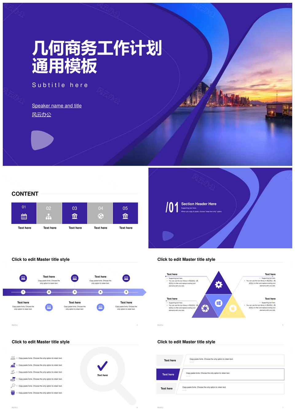 风云办公提供的紫色几何线条商务旅行工作景点总结PPT模板,下载格式为pptx,一共31页,作品中文字及图均可以修改和编辑,图片更改请在作品中右键图片并更换,文字修改请直接点击文字进行修改。