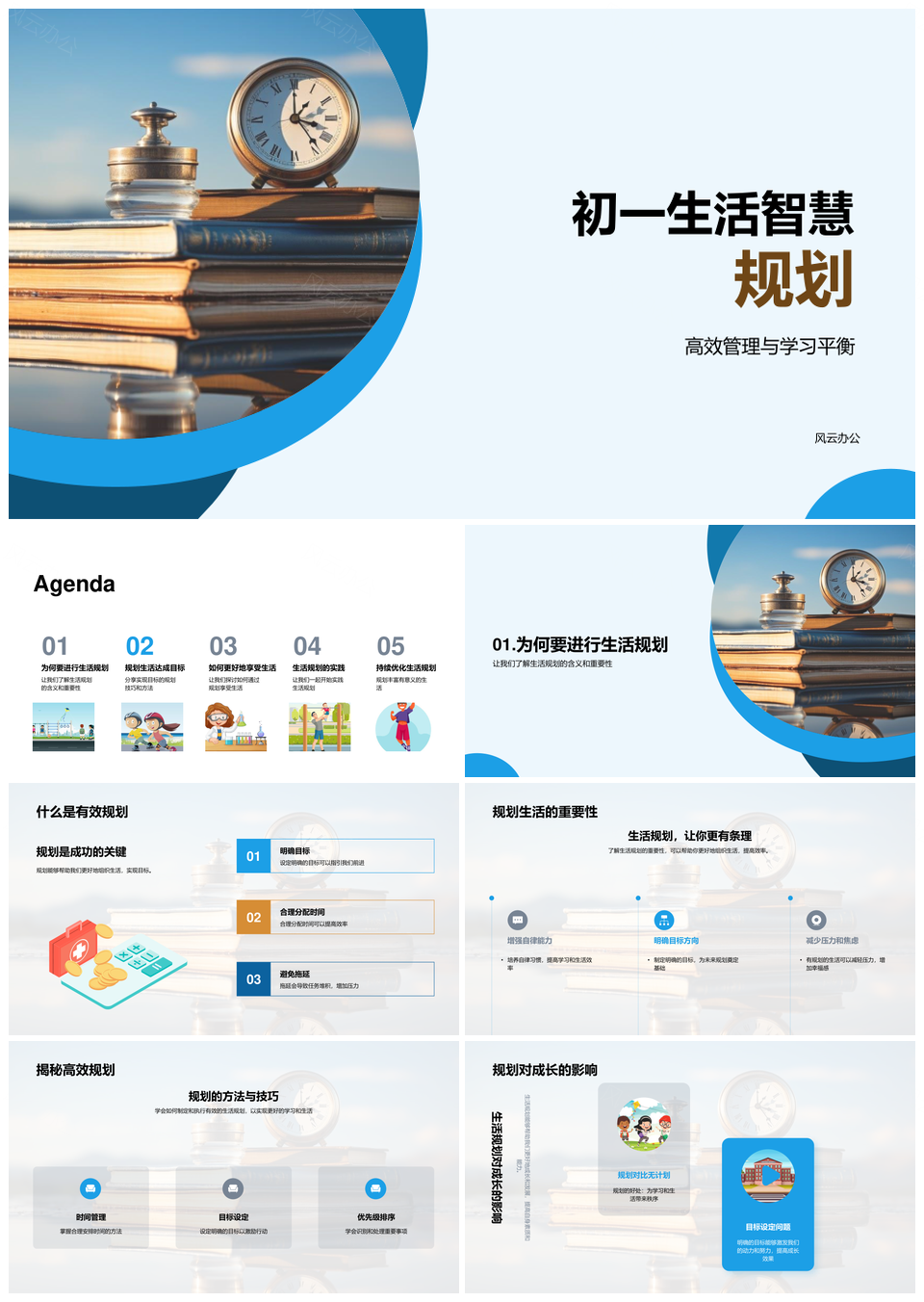 风云办公提供的初一新生时间管理高效学习目标规划PPT模板,下载格式为pptx,一共33页,作品中文字及图均可以修改和编辑,图片更改请在作品中右键图片并更换,文字修改请直接点击文字进行修改。