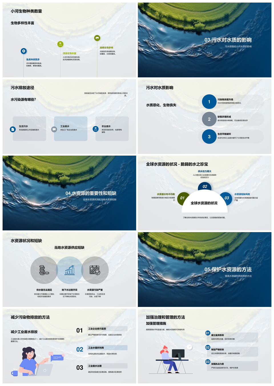风云办公提供的守护小河水资源维护生态命脉PPT模板,下载格式为pptx,一共19页,作品中文字及图均可以修改和编辑,图片更改请在作品中右键图片并更换,文字修改请直接点击文字进行修改。