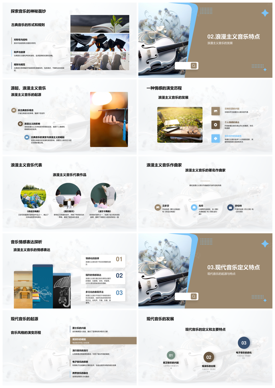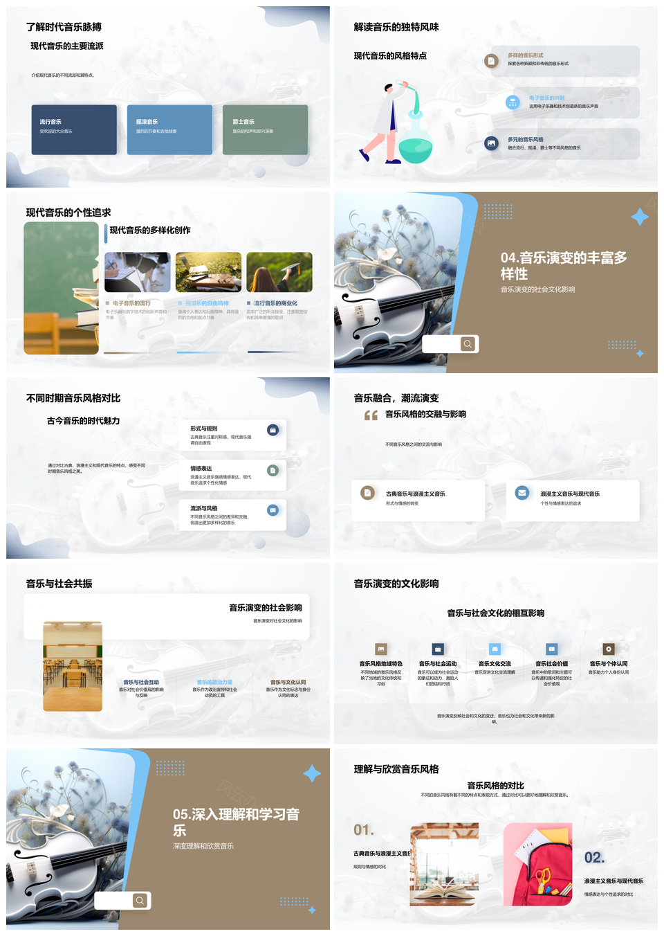 这是一张古典浪漫现代音乐流变交融社会文化影响PPT模板,包含古典、浪漫、现代、音乐、流变、交融、社会文化、影响等主题内容,也可用作古典浪漫现代音乐、现代音乐流变交融、音乐流变交融社会、流变交融社会文化、交融社会文化影响、古典浪漫现代、浪漫现代音乐、现代音乐流变、音乐流变交融、流变交融社会、交融社会文化、社会文化影响、古典浪漫、浪漫现代、现代音乐等PPT场景使用。 风云办公提供的古典浪漫现代音乐流变交融社会文化影响PPT模板,下载格式为pptx,一共31页,作品中文字及图均可以修改和编辑,图片更改请在作品中右键图片并更换,文字修改请直接点击文字进行修改。