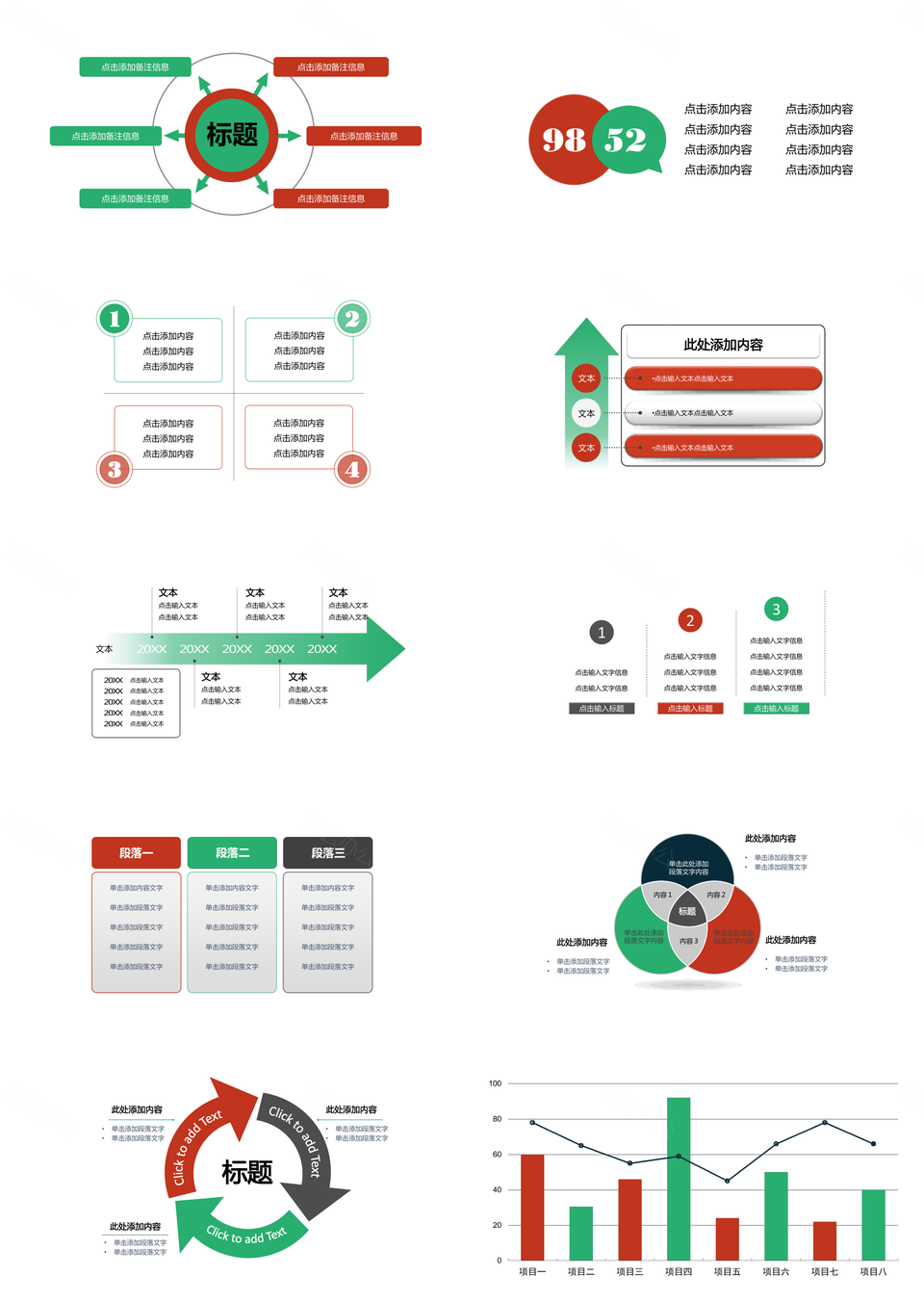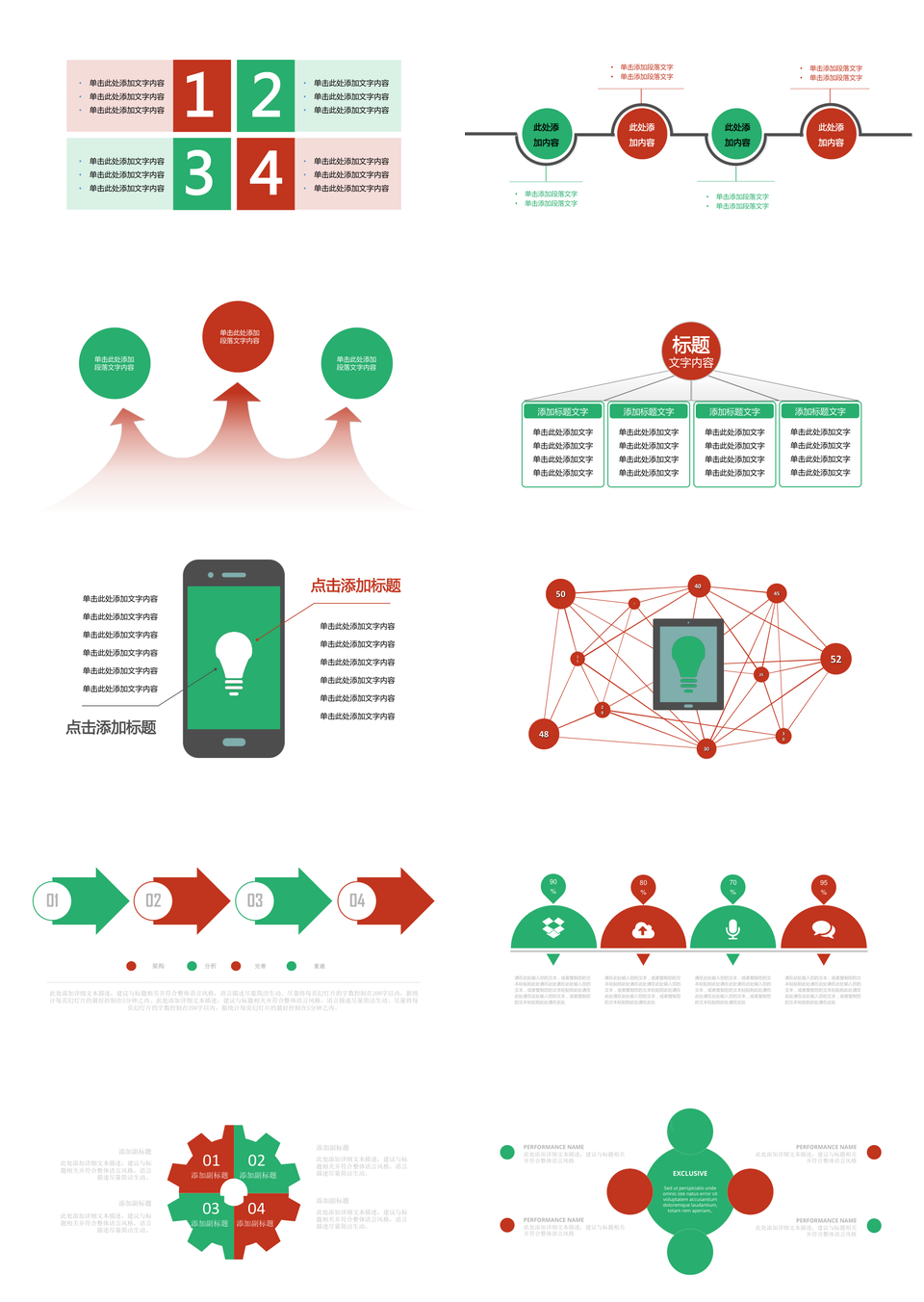 红绿配色扁平化PPT模板推荐