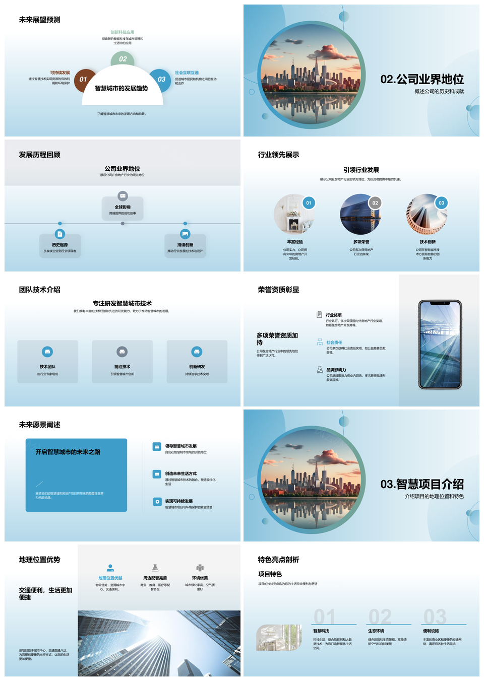 2025蓝色简约时尚科技风信息化智慧城市公司宣传大数据互联网+PPT模板