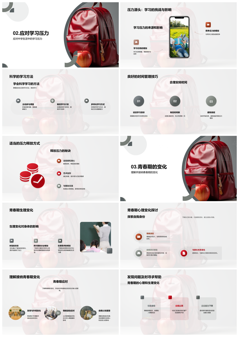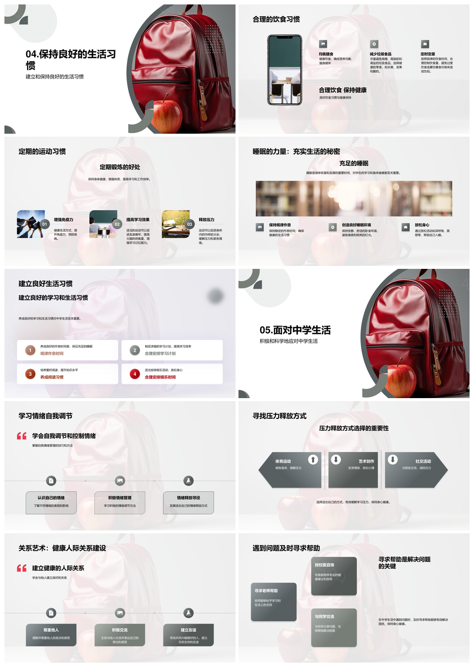 中学生健康成长身心适应学习运动饮食管理指南PPT模板推荐