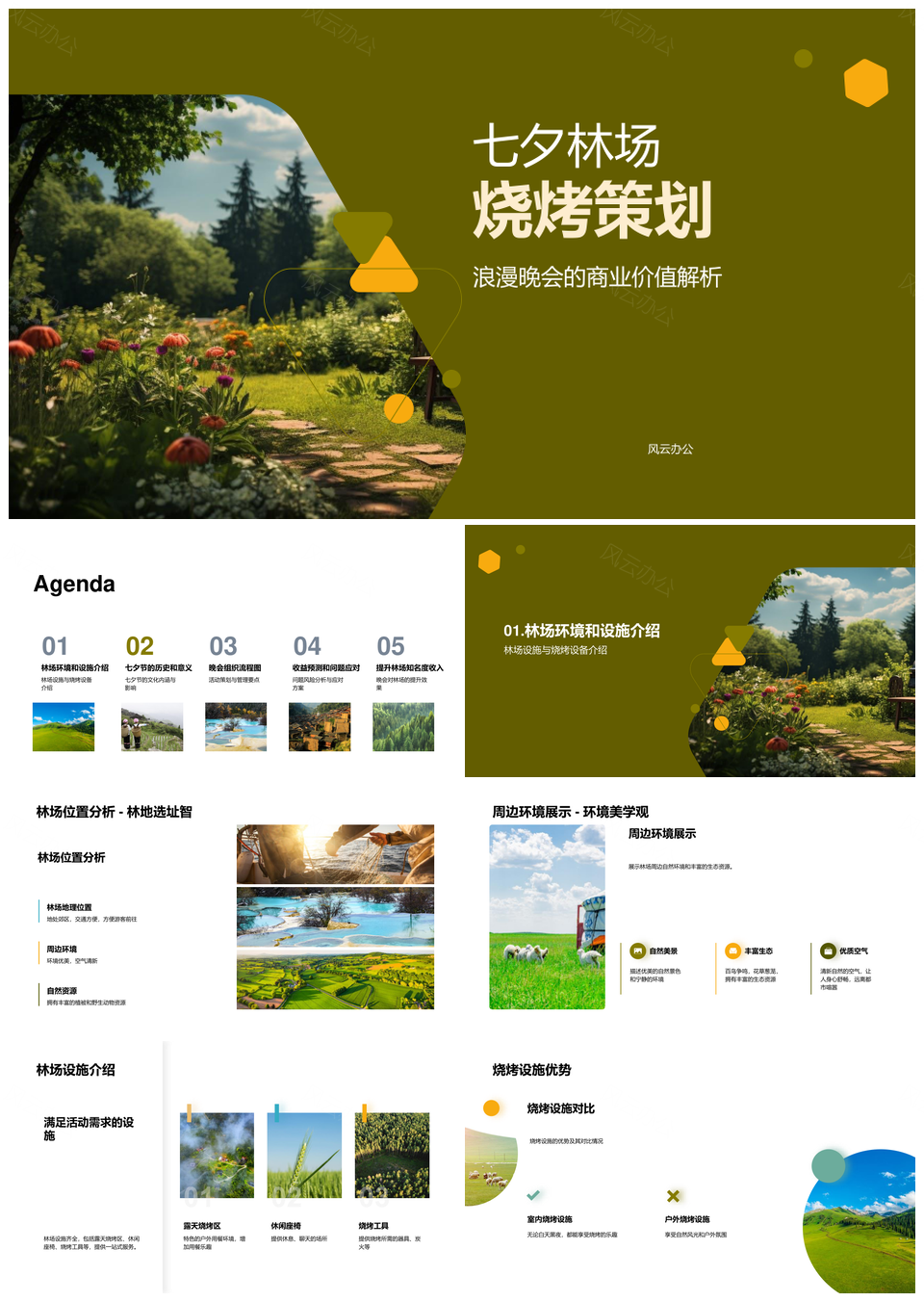 七夕林场烧烤商业活动策划解析PPT模板推荐