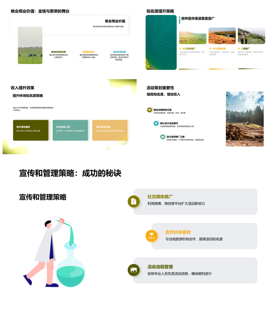 这款模板以简约线条与森系配色为核心,浅绿、墨绿、灰绿的渐变层次,既保留商务专业感,又融入自然治愈氛围,矢量图标清晰不失真,适配印刷与电子屏场景,模块化设计支持灵活调整图表、文字的位置,页边距与留白经过科学测算,视觉呈现轻盈舒适,没有冗余装饰元素,适配商务汇报、学术展示或提案策划等场景,用户可一键切换草绿或日系低饱和配色方案,在保持专业基调的同时,通过色彩明度变化传递清新或温馨的质感。